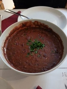 gruzińska zupa lobio (12,00) z czerwoną fasolą, orzechami włoskimi i gruzińskimi przyprawami – była bardzo gęsta, syta, duża – ale jak na mój gust za mało pikantna