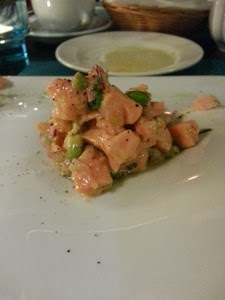 ceviche z łososia i krewetek (28,00) – z avocado i kolendrą – delikatny, dobrze doprawiony, wyrazisty i do tego ładnie podany