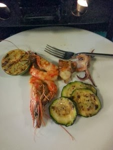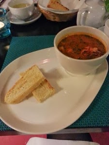 Ja wybrałam zupę rybną – tak jestem monotonna w wyborze zup ponieważ jestem od zupy rybnej uzależniona – po prostu muszę ją zjeść jak tylko wypatrzę w menu. M na start wybrał ceviche z łososia. Na danie główne wytypowana została parrillada del mar czyli mix owoców morza – danie dla dwóch osób. Pod koniec wieczoru byłam bardzo wdzięczna obsługującemu nas Panu, że ostrzegł nas przed wielkością parrillady i że nie zamówiliśmy już nic więcej.