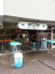 Lokal jest malutki, za stoliki służą mu deski surfingowe