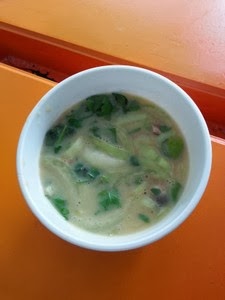 na początek i rozgrzewkę zupa rybna (450,00 HUF, około 6,70 zł) – porcja wcale nie mała, choć mało w niej było aromatu ryby. Była za to pikantna, z chrupiącymi warzywami – bardzo smaczna