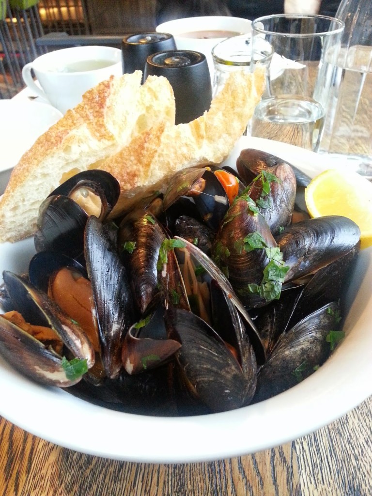 Na początek małże w białym winie (24,00) – olbrzymia porcja wielkich mięsistych muszli. Pycha i mniam