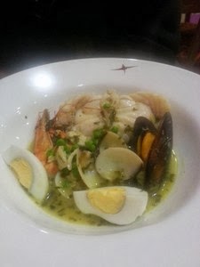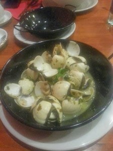 Ja zakończyłam wieczór ośmiornicą po galicyjsku (pulpo a la gallega) (45,00) – podaną na plastrach ziemniaka. Ośmiornicy została ugotowana, cienko pokrojona, posypana solą i papryką oraz podana na plastrach ziemniaka. Była miękka, chrupka – po prostu świeża. Porcja jednak znikoma – zaledwie kilka maleńkich plasterków. Zdjęcia nie będzie ponieważ nie jest wyjściowe ani twarzowe.