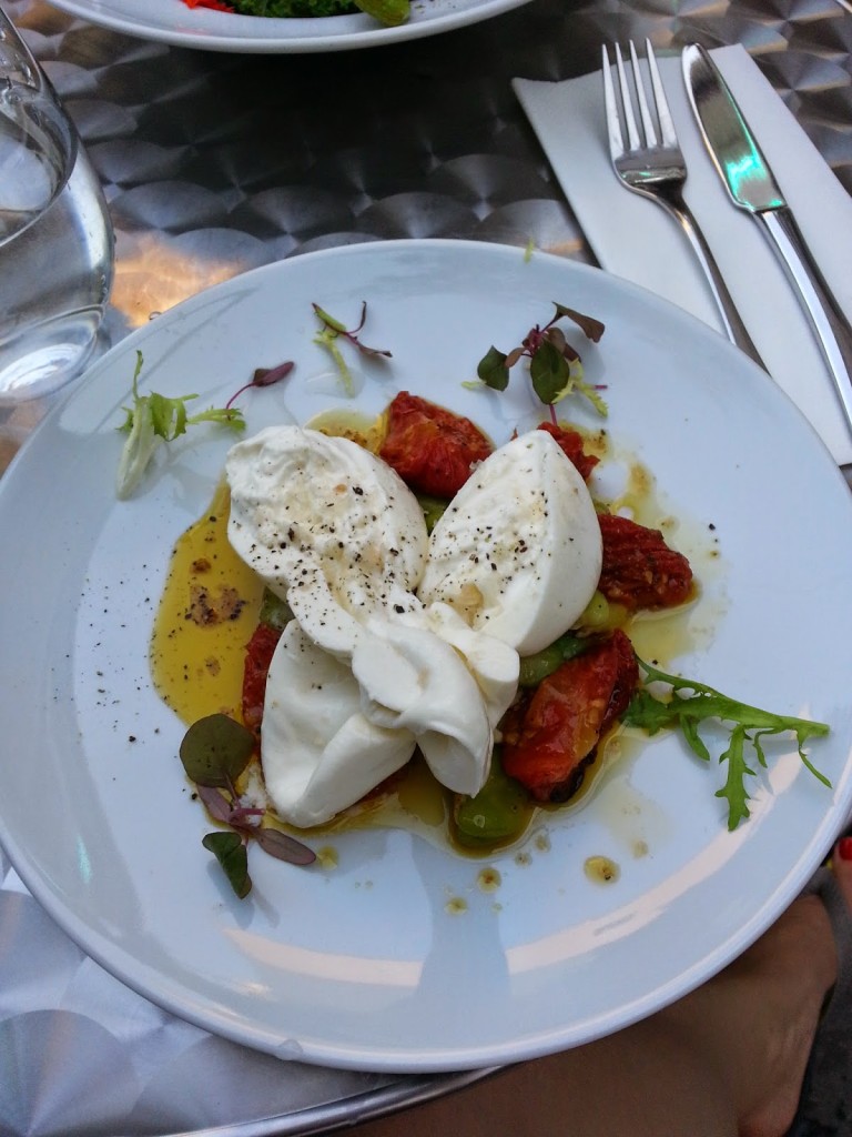 burrata (30,00) kremowy ser mozzarella ze śmietaną podany z bobem i suszonymi pomidorami – lekkie ale pożywne danie, dobre o każdej porze