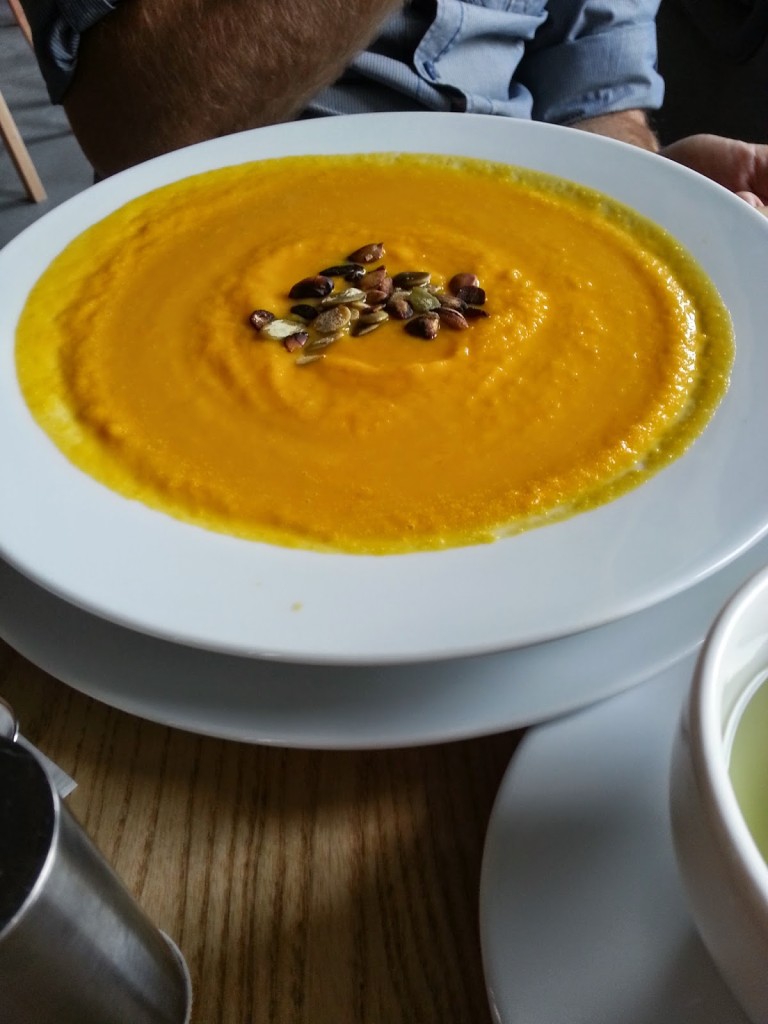 zupa – krem marchewkowy (10,00) – gęsty, lekko słodki, pożywny – idealny na drugie śniadanie lub wczesny lunch