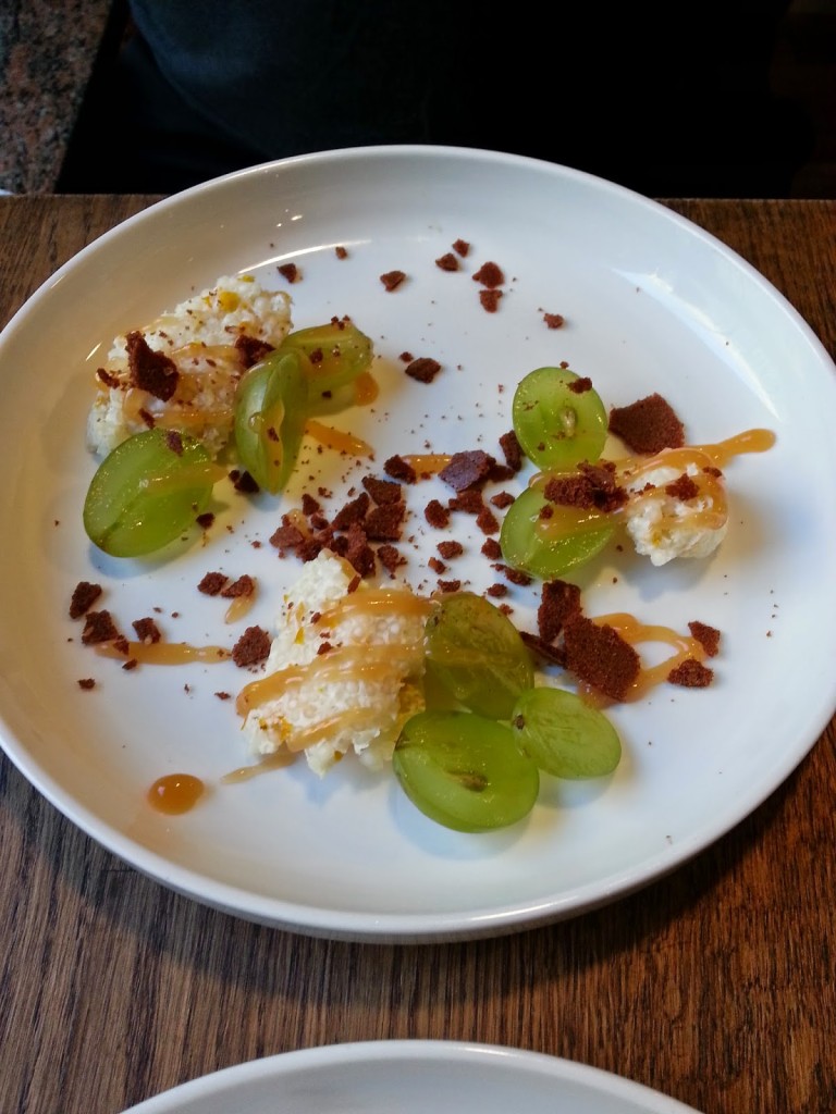 deser – cytrus | winogrona | sezam (16,00) – deser lekki dla zmysłów i ciała, – połączenie delikatności kremu oraz słodycz i kwasowości winogron