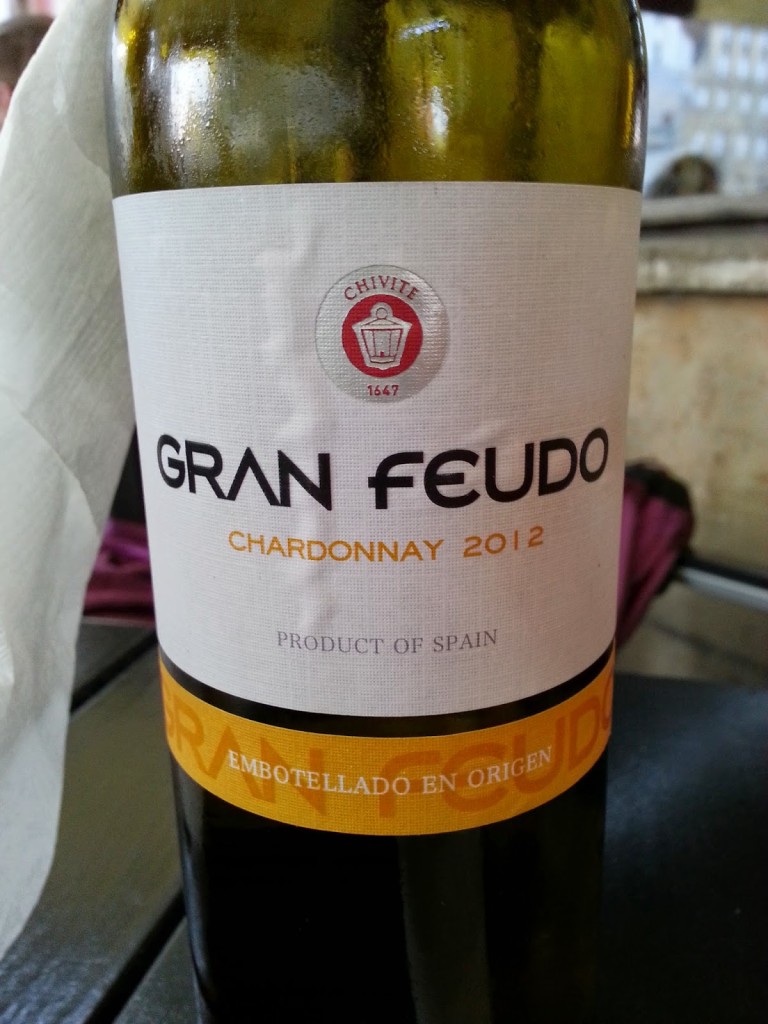 Z winem miałam nie lada problem – wino domowe nie nadawało się do picia – sama słodycz, wytrawnego wina sprzedawanego na kieliszki nie było, a kolejnym wyborem było hiszpańskie Chardonnay – tego jednak nie mogłam spróbować (nie było żadnej otwartej butelki a obsługa nie chciała jednej dla mnie na test otworzyć) – musiałam od razu zamówić butelkę. Na szczęście wino było pijalne – lekko owocowe, delikatne, nie narzucające się – Gran Fuedo Chardonnay, Bodegas Julian Chivite (75,00 zł za butelkę)