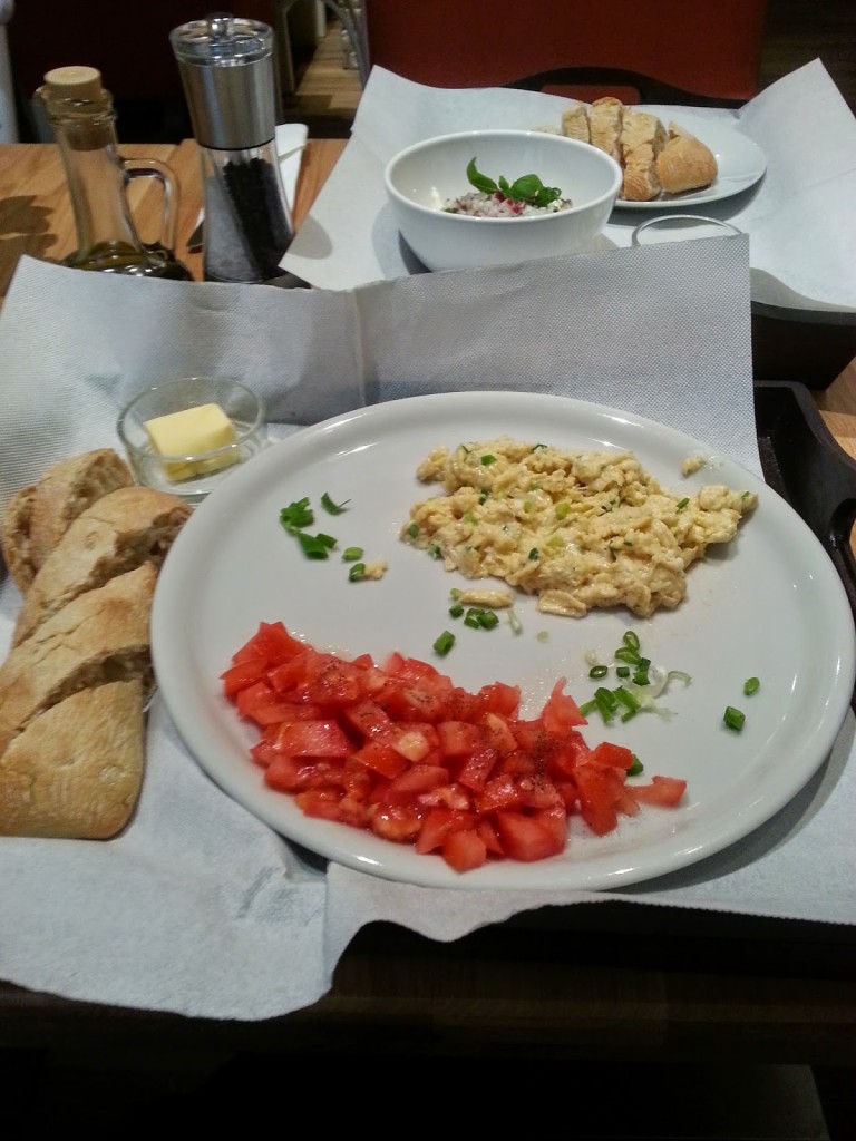 Zamówiłam serek ze szczypiorkiem i rzodkiewką (6,00) – otrzymałam kremowy serek z pudełka – wyciąganie go zajęło 30 min. Był sztuczny, „sklepowy”, po taki idzie się do marketu a nie do restauracji. Od lokalu podającego śniadania oczekuję twarogu a nie kremowego serka President.
