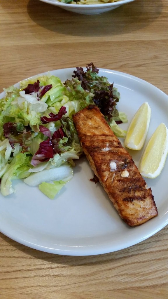 z karty dań wybrałam jeszcze świeżą rybę (49,00) – tego dnia podawany był pieczony łosoś. Wow!! ostatnio takiego widziałam w Lidlu. Czy to wygląda na świeżą rybę? – NIE. To za to jest kompletny brak szacunku dla klienta!!!! Podawać takie padło i to jeszcze za cenę 49,00 zł – po prostu chamstwo