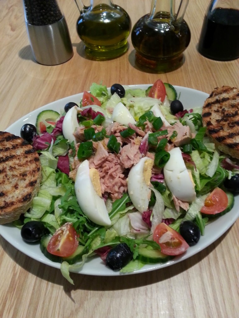 Z karty dań nastawionej głównie na serwowanie pizzy i pasty (przecież we włoskiej nic innego nie ma) wybrałam zupę i sałatkę – te są w zdecydowanej mniejszości. Osoby unikające dań mącznych mają jeszcze do wyboru rybę (o niej później) i jednego steka – niewiele.