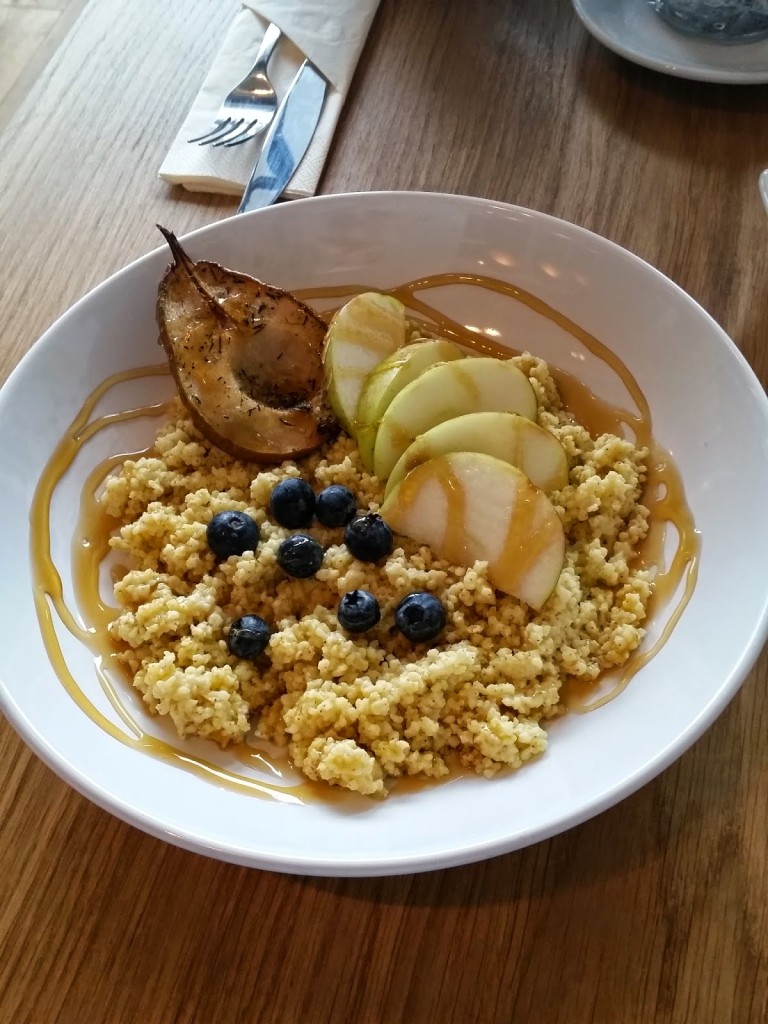 a na drugie śniadaniejaglankę (12,00) czyli kaszę jaglaną z miodem, gruszką i jabłkami – pysznie słodką