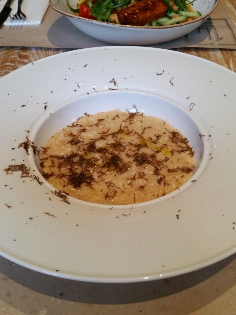 ja zdecydowałam się na risotto (29,00) ze świeżą czarną truflą. Ta mała, bardzo aromatyczna porcja jedynie rozbudziła mój apetyt.