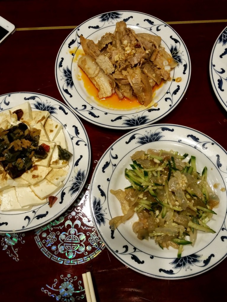 Pozwoliłam gościom zamówić dania z bardzo obszernego menu – pisząc obszernego mam na myśli grubą księgę z listą przystawek, zup, dań mięsnych, rybnych, wegetariańskich. Menu napisane zostało po polsku, angielsku oraz chińsku. Goście wiedzieli, że nie jadam mięsa i zamówili dania z tofu, warzywami i rybami. Jedno danie mięsne było specjalnie dla nich.