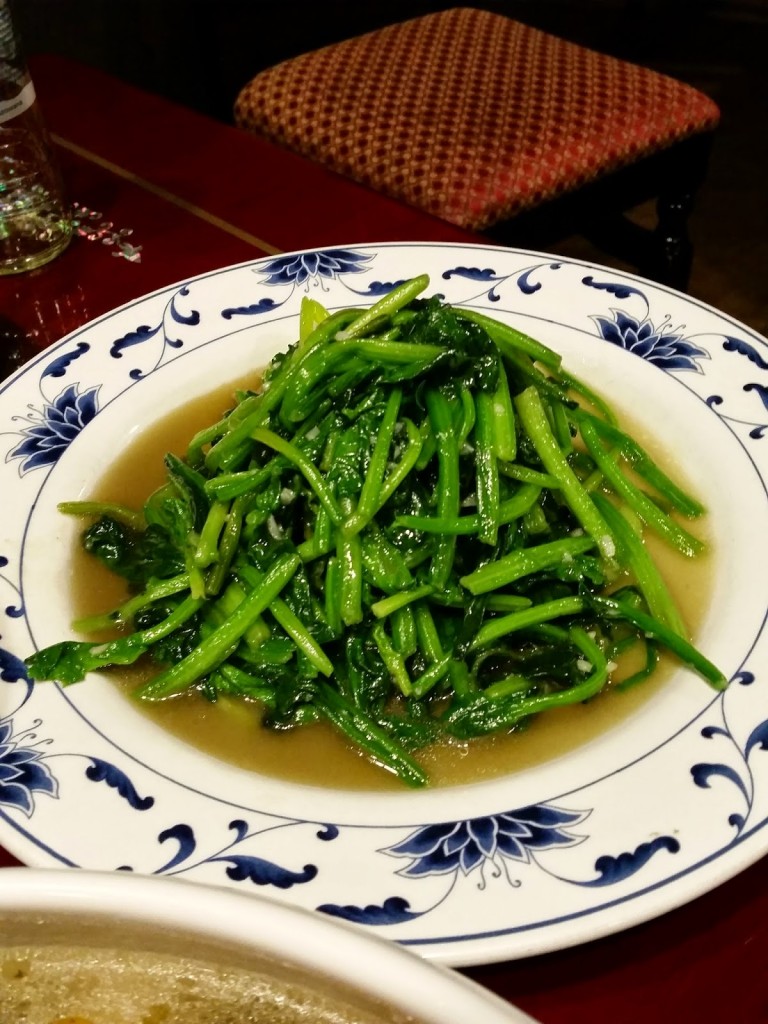 jedna z moich ulubionych pozycji – szpinak z czosnkiem i sosem rybnym (25,00) – mogłabym zjeść całą wielką porcję tego warzywa podanego na taki własnie sposób.