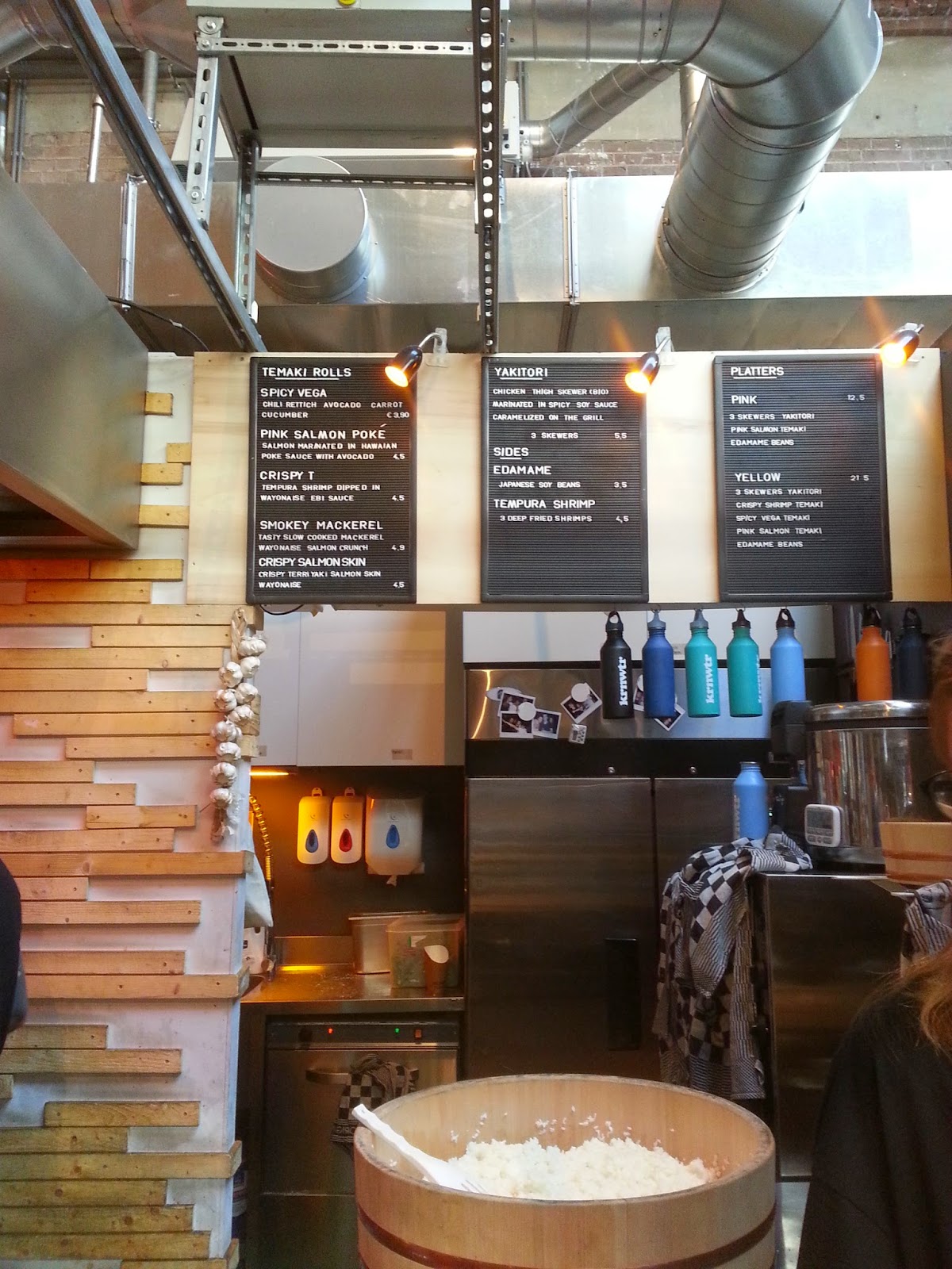 Na zaspokojenie pierwszego głodu zamówiliśmy temaki rolls w Menner Temaki – pink salomon poke (4,5 EUR) z marynowanym w hawajskim sosie łososiem i awokado oraz smokey mackerel (4,90 EUR) z gotowaną makrelą. Były pyszne i warte zamówienia.