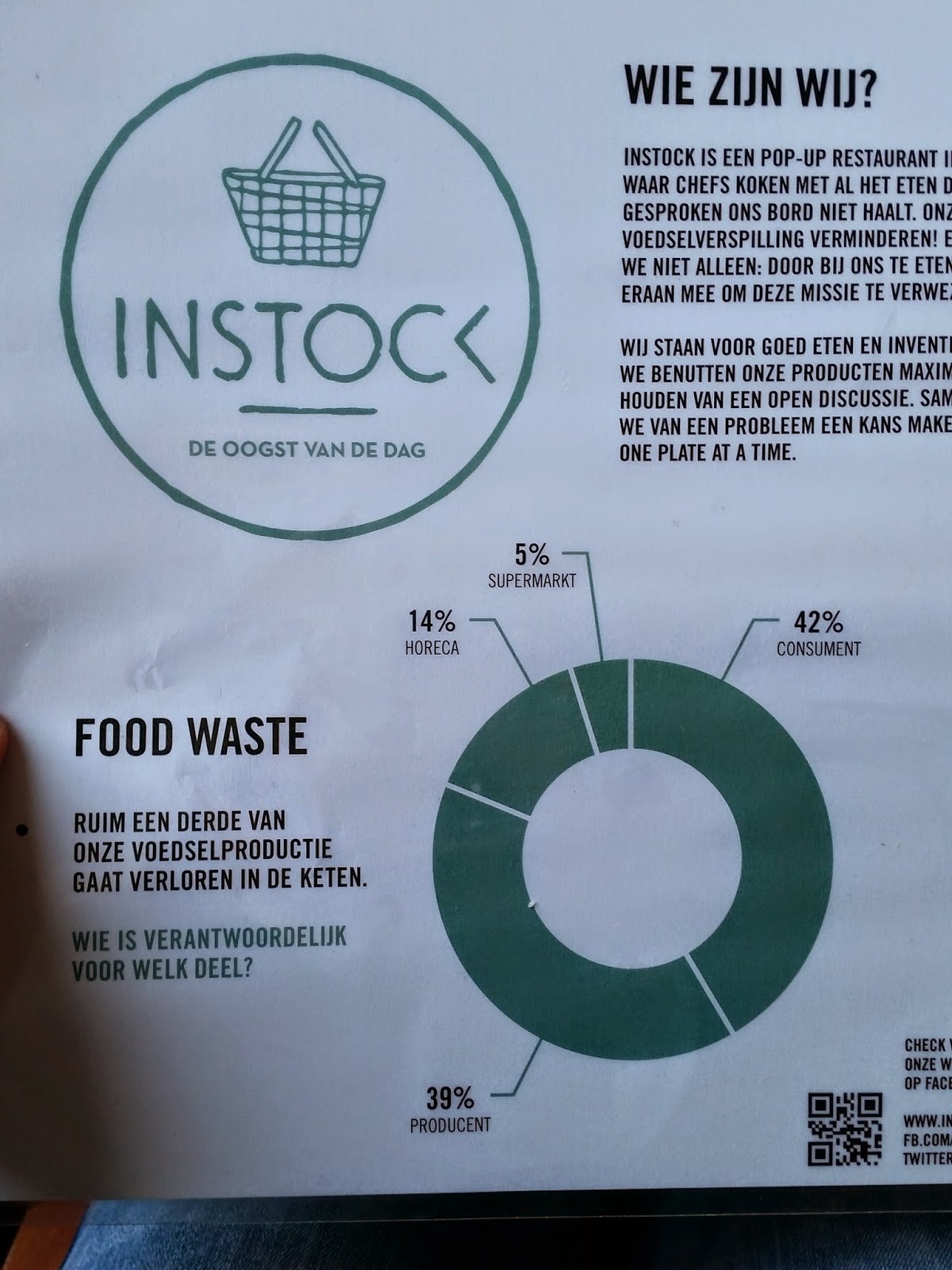 Medialna dyskusja o nie marnowaniu jedzenia trwa już od lat. Temat jest poważny – szacuje się, że w Polsce co roku marnuje się 9 mln. ton żywności, z czego 2 mln. przypadają na konsumentów a reszta to udział producentów oraz sklepów. Statystyki światowe mówią o 1,5 mld ton rocznie wyrzucanego mięsa, nabiału, warzyw, owoców, chleba. Niechlubnymi przodownikami są Ameryka Północna i Europa. Wybierając się na przedłużony majowy weekend do Amsterdamu koniecznie chciałam odwiedzić Instock – restaurację, która 100% swoich dań przyrządza z produktów „wyrzucanych” przez markety.