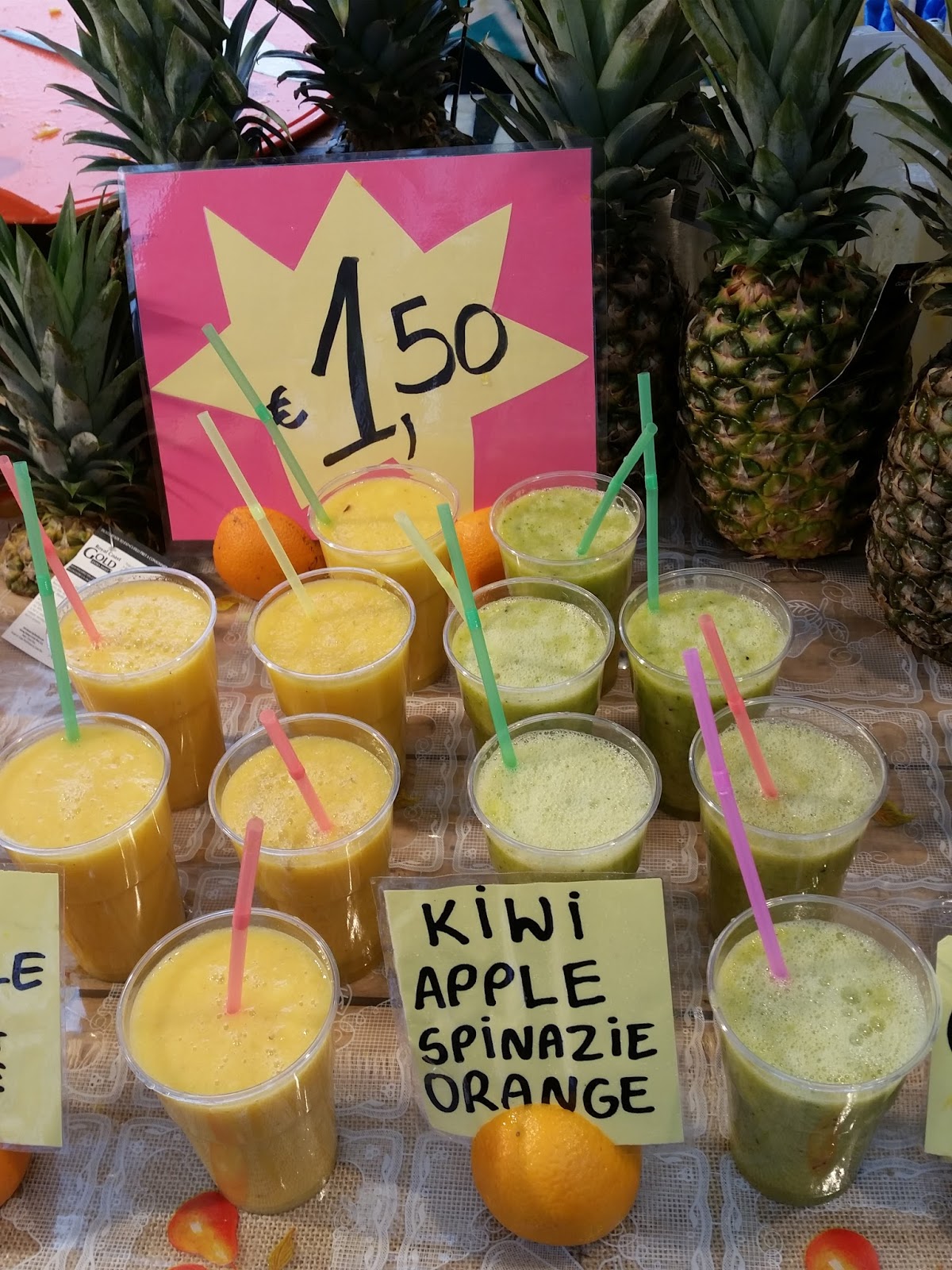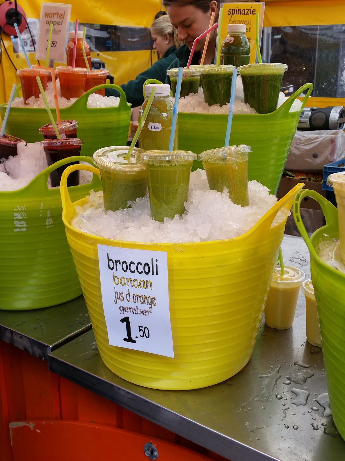 Co do soków to Amsterdam pełen jest miejsc, w których na ulicy, na niewielkich stoiskach, na targowiskach, kupicie świeże soki owocowe i owocowo-warzywne. Dla nas to był prawdziwy miejski raj – korzystaliśmy z tego dobrodziejstwa gdzie tylko mogliśmy opijając się zielonymi koktajlami.