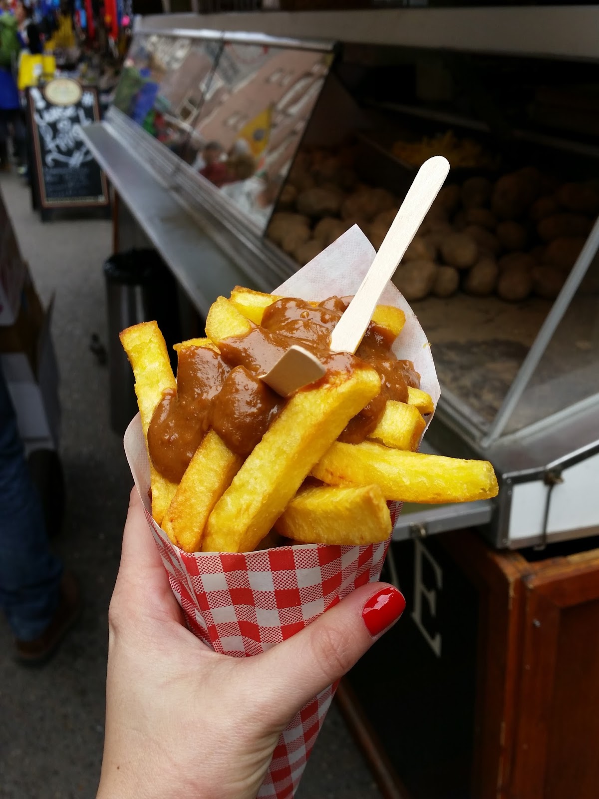 Ale tematem przewodnim tego artykułu jest amsterdamski street food – zaczynam od przedstawienia Wam czegoś zupełnie odjazdowego, co musicie spróbować będąc w Amsterdamie czyli frytek z pikantnym orzechowym sosem (sos to zmiksowane orzeszki ziemne i chilli). Mała porcja kosztowała 3,00-3,50 EUR, do wyboru była jeszcze średnia i duża (ale ta ostatnia przeznaczona jest dla prawdziwych obżartuchów – to chyba 1kg ziemniaków). My zapchaliśmy się małą porcją, która dla nas i tak była duża. Frytek szukacie na targowiskach i w budkach stojących przy turystycznych szlakach.