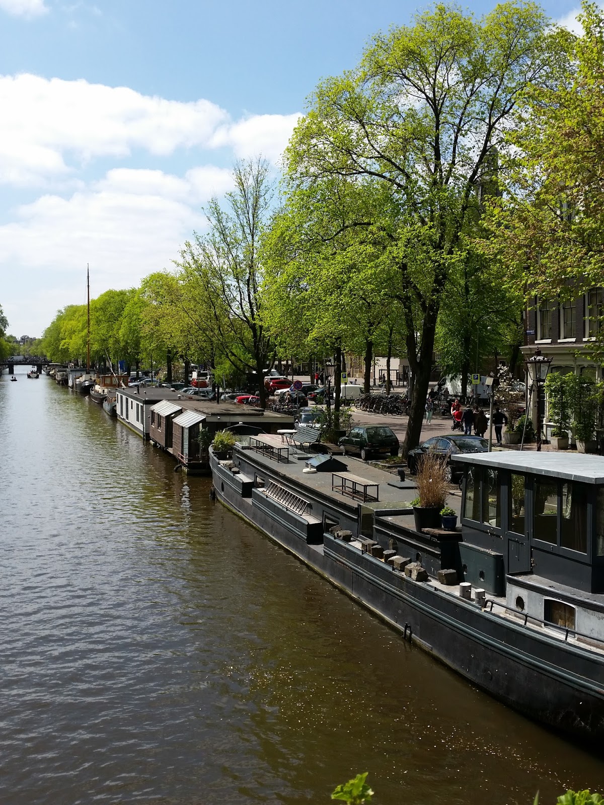 Amsterdam to Wenecja północy – miasto poprzeplatane plątaniną kanałami i mostów łączących brzegi, na których przy wąskich uliczkach stoją ciągi zadbanych kamienic. Na kanałach przycumowane lub wręcz wmurowane wygrzewają się w promieniach słońca mieszkalne barki. Na niektórych z nich posadzono ogrody:)
