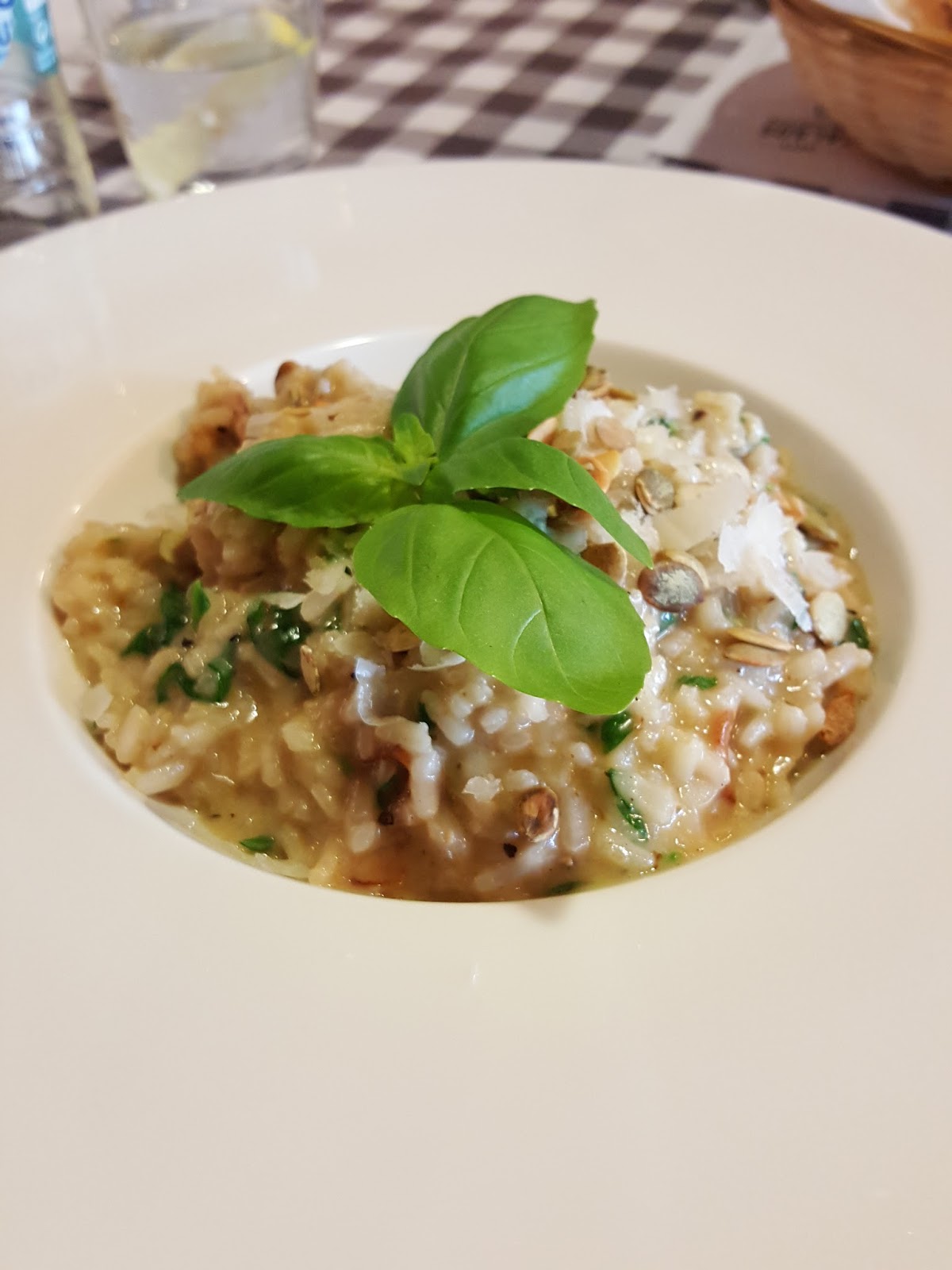Sezon na szparagi już się skończył więc zamiast risotto ze szparagów podano mi risotto z kurkami (29.00) – zostałam o tym wcześniej uprzedzona i z radością zgodziłam się na kurki, które bardzo lubię. Gęste, kremowe, aromatyczne risotto było gwiazdą tej wizyty.