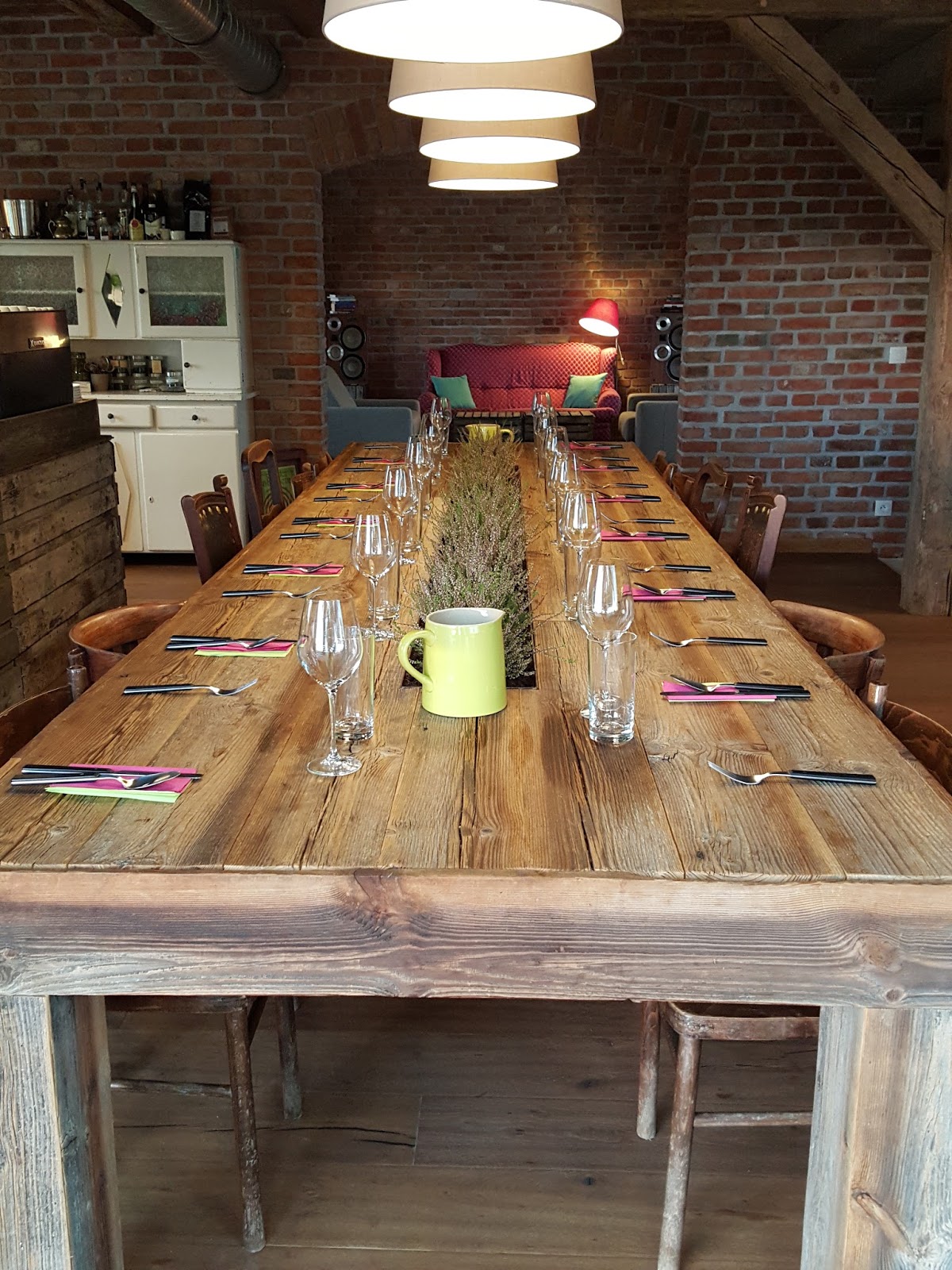 Wspomniany wielki stół z wrzosami po środku – w końcu idzie jesień