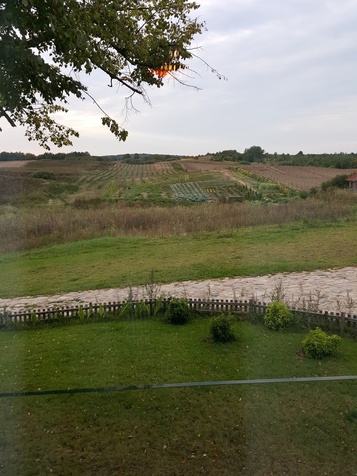Hipnotyzujący widok z okna na pole, na którym Kwaśne Jabłko uprawia własne warzywa – pomidory, cukinię, zioła. Mieliśmy okazję je kosztować podczas śniadań.