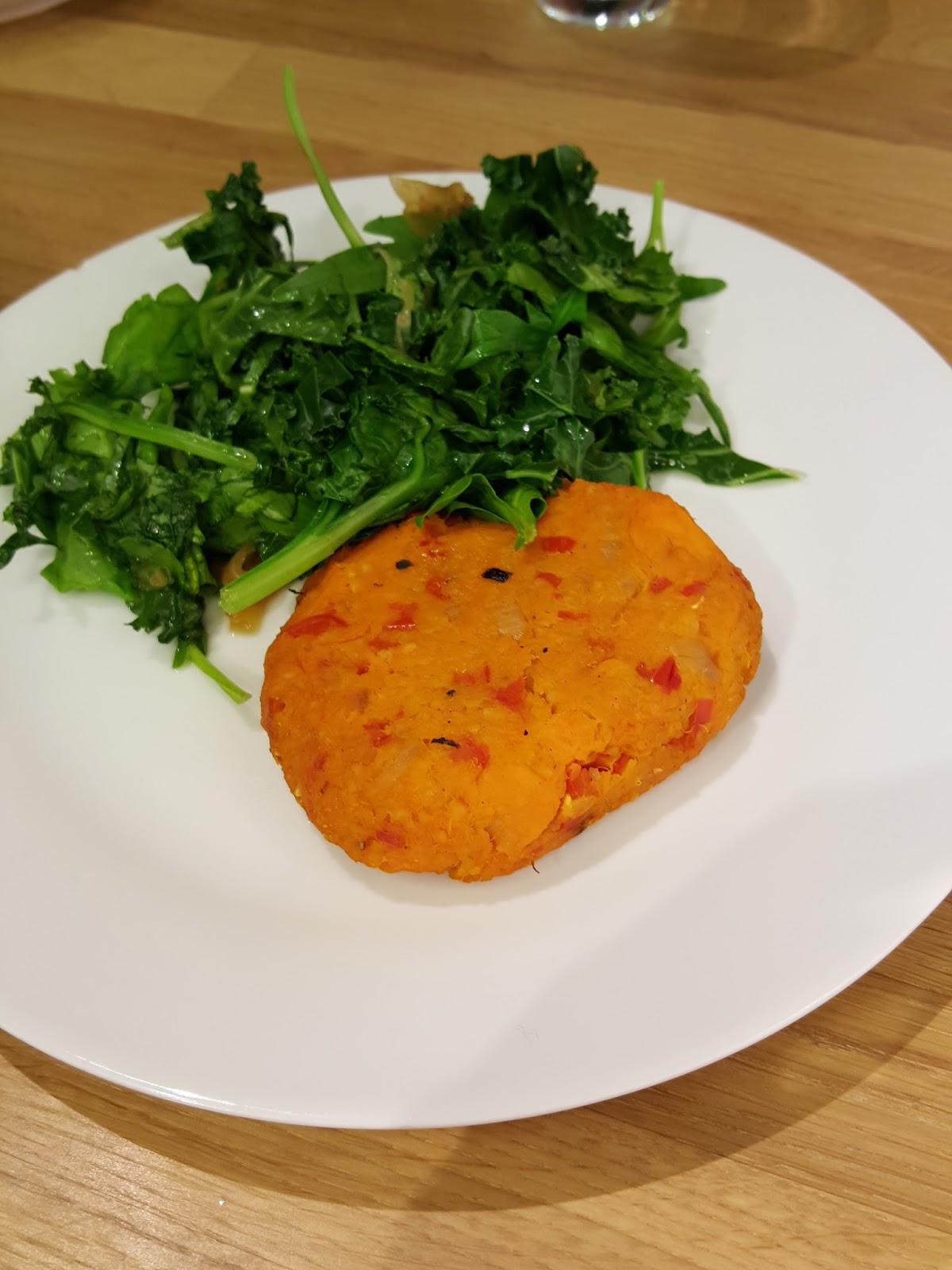 Ja zdecydowałam się na płaskiego w smaku burgera wegańskiego z batatów bez bułki podanego w towarzystwie jarmużu oraz sałatkę z kaszą quinoa z jarmużem, która wręcz pływała w oleju i niestety nie byłam w stanie zjeść jej na jeden raz (zabrałam na wynos)