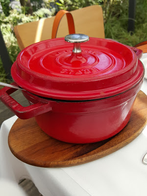 To był idealny dzień na jedzenie w ogródku – w cieniu drzew i rozłożonych parasoli. Upał na kilka dni zelżał, wiał lekki wiatr. Było bardzo przyjemnie.