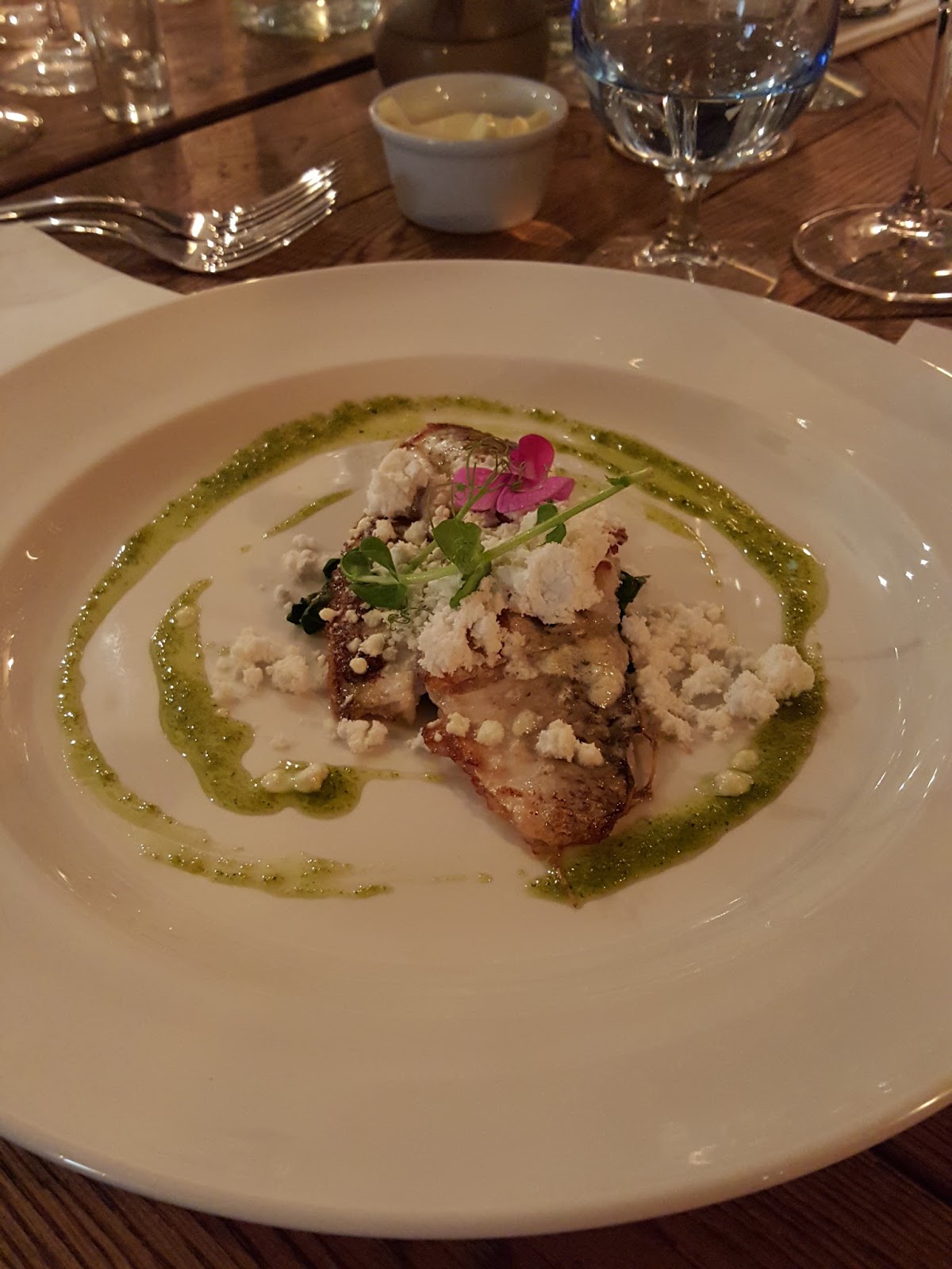 Woda | tu zaprezentowana została znana mi już z dnia poprzedniego płoć podana na rukwi wodnej z pudrem z tataraku. Kolejne wspomnienie z dzieciństwa kiedy to często zajadałam smażone płotki wyławiane z jezior Pojezierza Lubuskiego przez moich rodziców. Miłe wspomnienie.