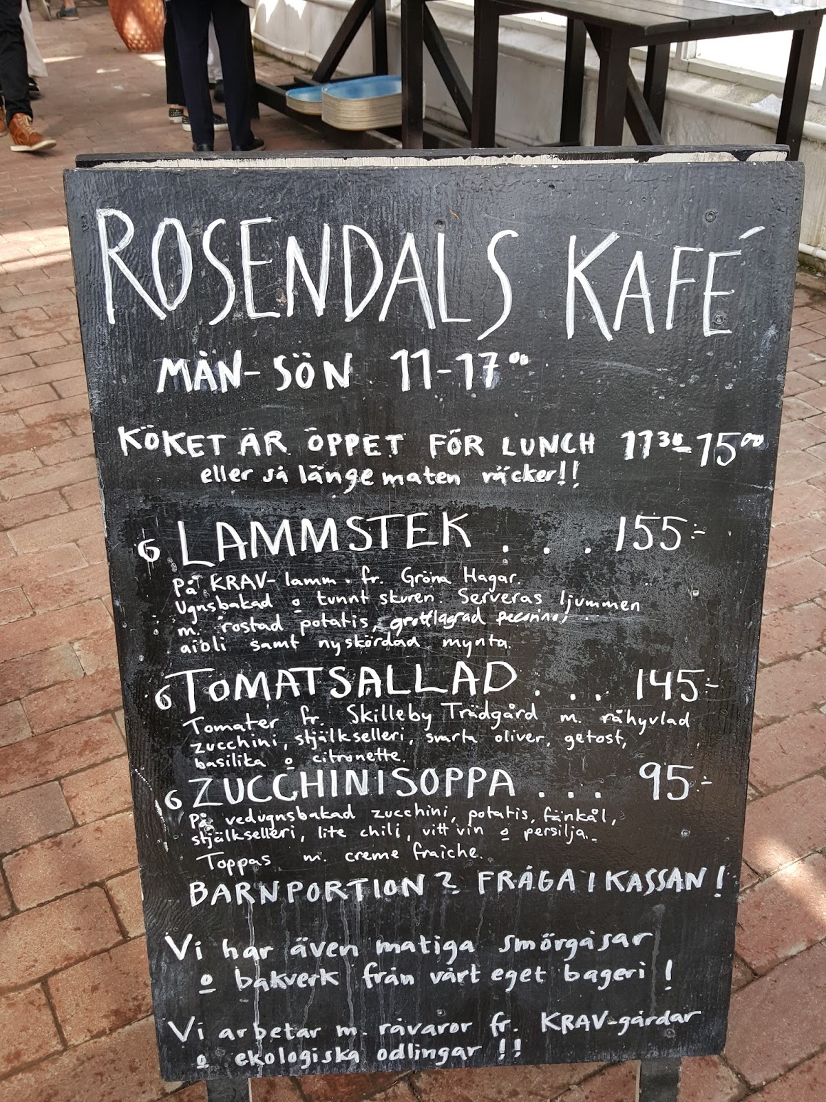 Menu w Rosendals Kafe dostępne jest wyłącznie po szwedzku – musicie pytać obsługę co aktualnie jest dostępne, no chyba, że sami rozszyfrujecie opisy co okazuje się czasami możliwe.