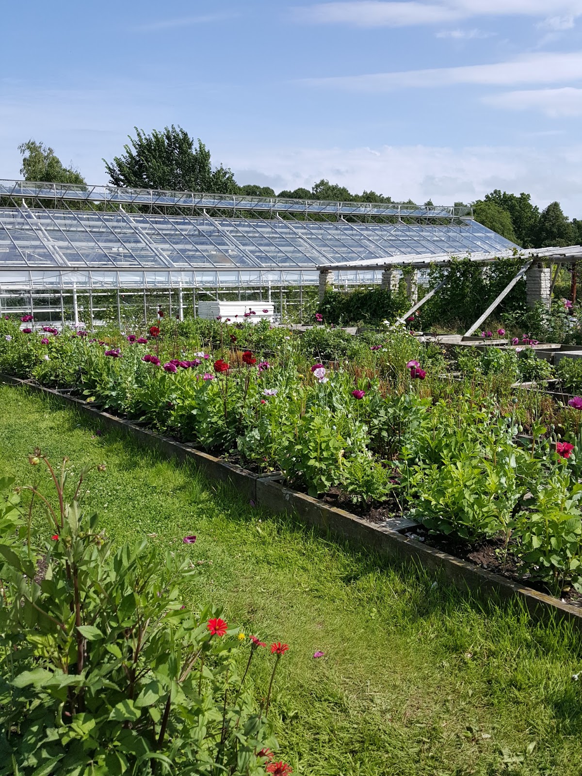 A to już szklarnie Rosendal – w części z nich uprawiane są warzywa ale w kilku ustawiono stoły – w lecie nie polecam w nich zasiadać (jest gorąco jak w szklarni), lepiej poszukać stolika wśród drzew jabłoni.