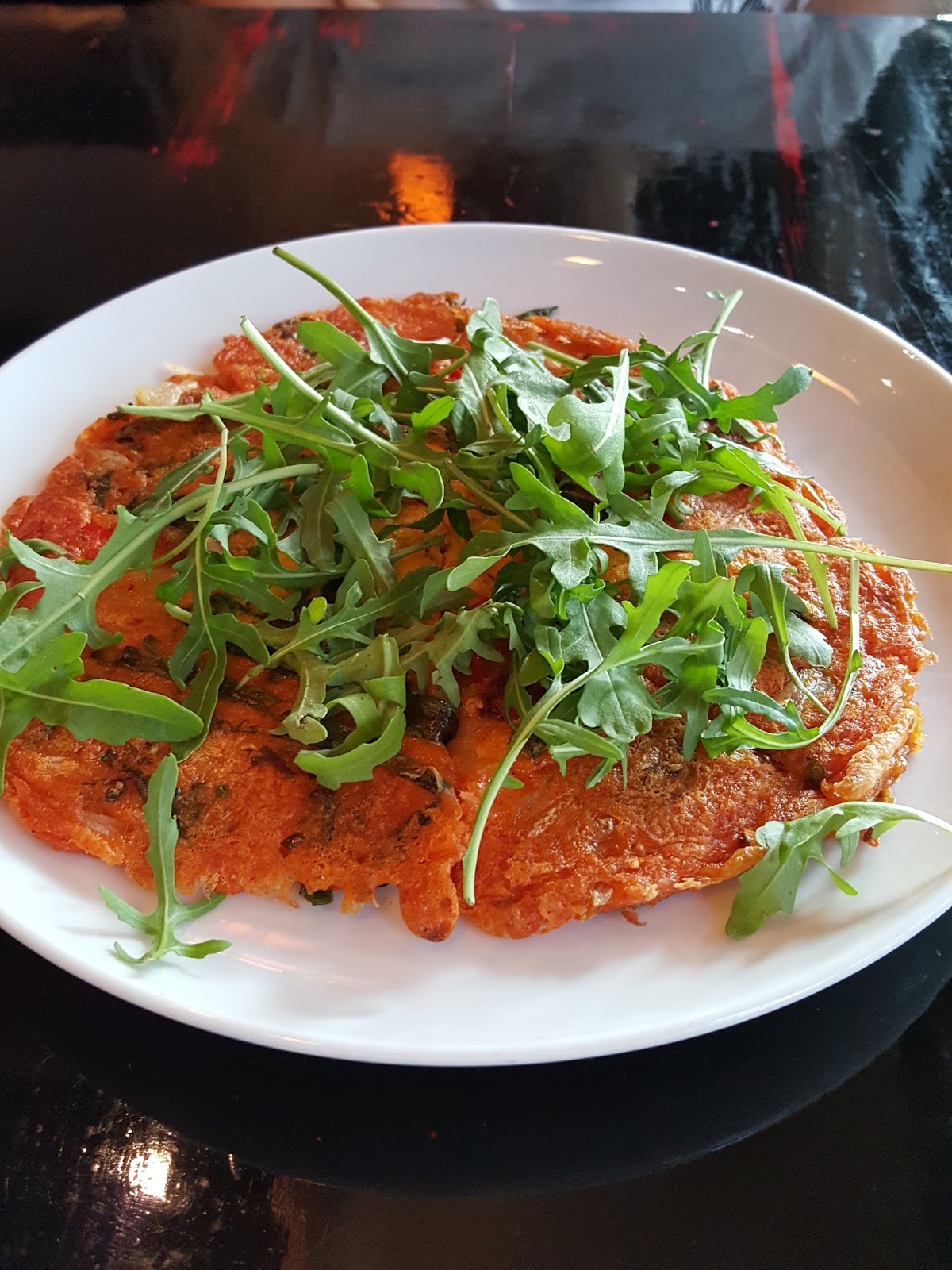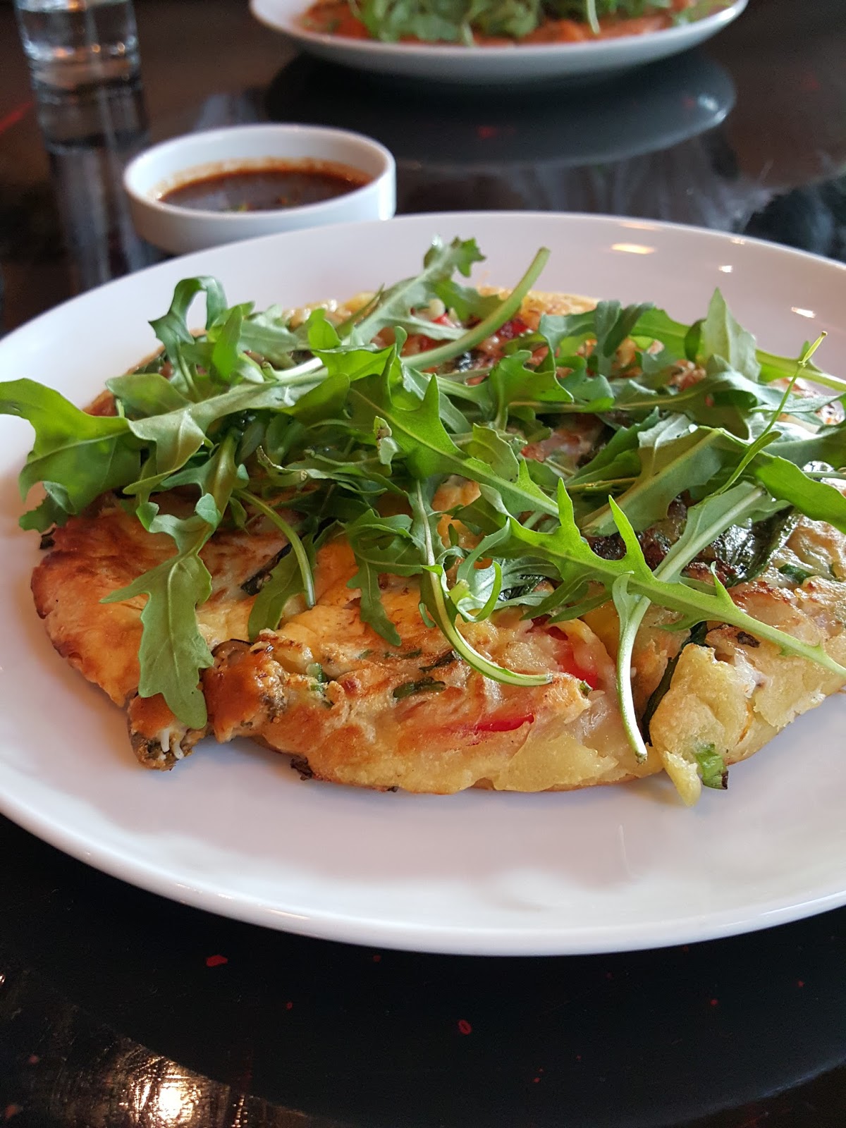 Muszę Wam przyznać, że dla tego placka warto pofatygować się aż w te rejony – pikantny, kwaśny, soczysty kimchi zizmi (15,00 zł mały, 30,00 zł duży) z papryką, dymką, przykryty rukolą. Mała porcja spokojnie może być daniem głównym a nawet jeżeli jesteście bardzo głodni to i tak nie przesadzajcie z drugim daniem.