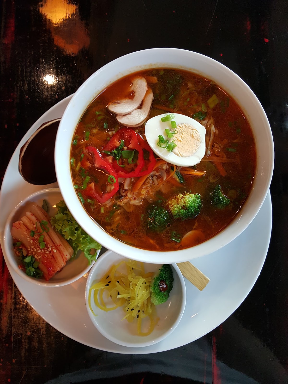 Ja wybrałam warzywny ramen (35,00) – wielką michę pełną makaronu, aromatycznego bulionu oraz cieniutko pokrojonych warzyw. Bardzo polecam jako danie główne – porcja jest olbrzymia.