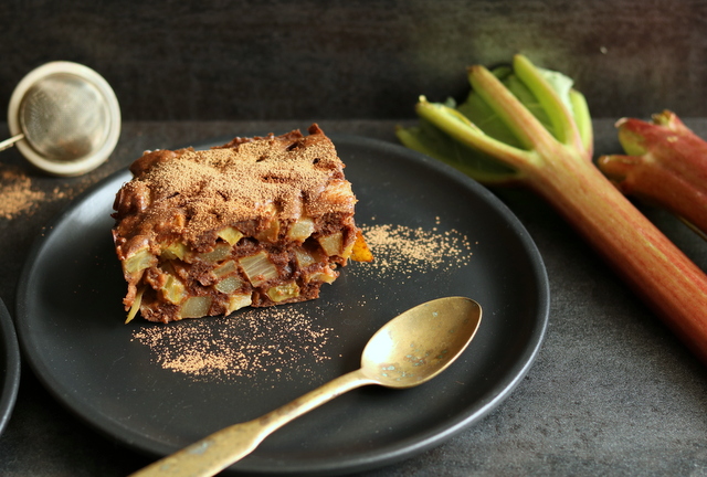 Moje pierwsze podejście do tego ciasta okazało się zupełnym niewypałem. O ile sam rabarbar konsystencję miał udaną i kwaśny smak zachował to reszta była bez smaku. Ale zawzięłam się i w końcu wyszło – ciasto z rabarbarem słodzone owocami i karobem. Musicie go spróbować bo przecież sezon na rabarbar mamy w pełni.