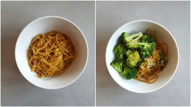 Do makaronu podałam brokuły z czosnkiem i azjatyckim sosem.
