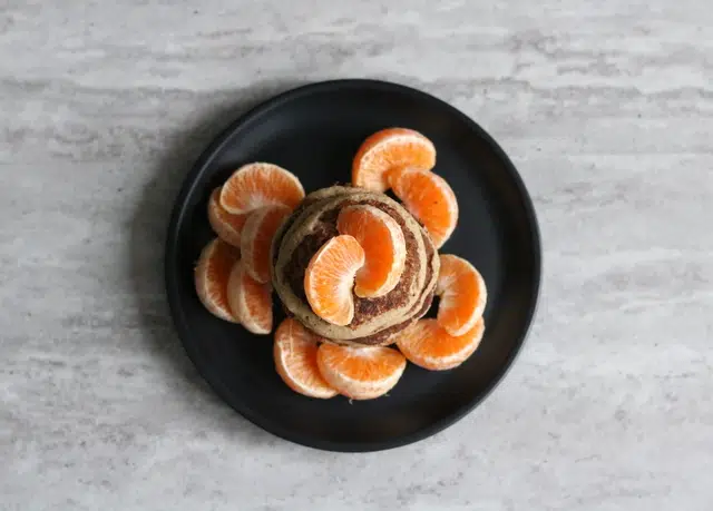 Placuszki możecie podawać z ulubionymi owocami i miodem oraz posypać je dodatkowo cynamonem.