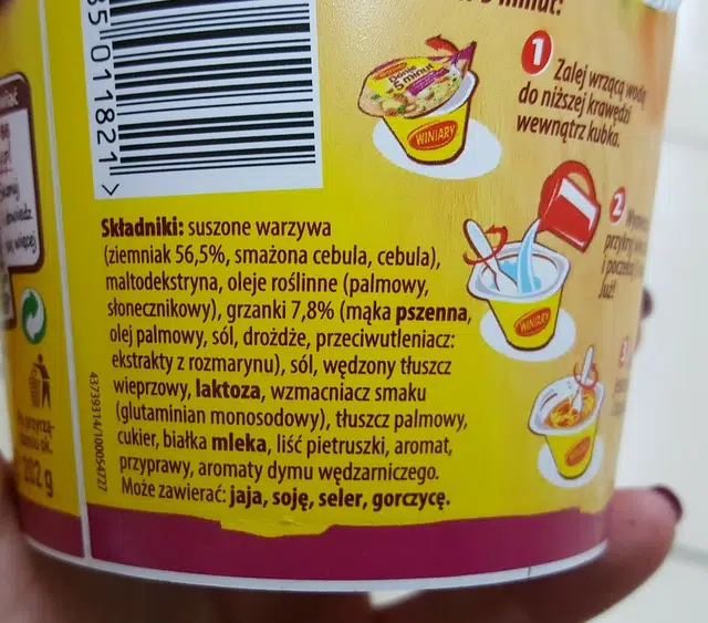 A oto danie, po którym wcale nie spodziewacie się słodyczy. Taki ekspresowy fast food czyli proszek zalewany wodą. Zaraz po suszonych warzywach w składzie pojawia się maltodekstryna. Słodyczy dodaje jeszcze cukier.