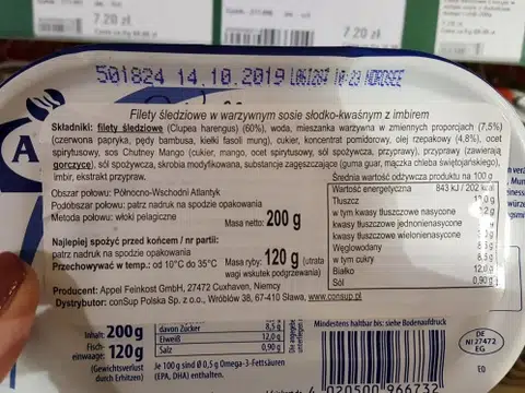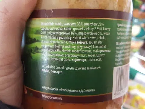 Oto przykłady etykiet na produktach zawierających skrobię modyfikowaną