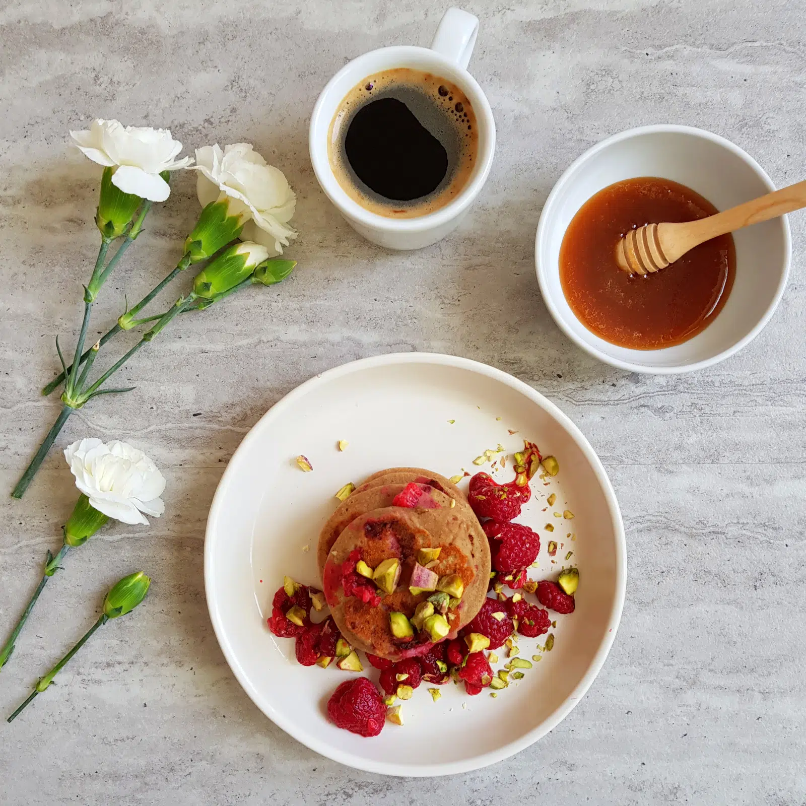 Jaglane placuszki (pancakes) śniadaniowe z malinami