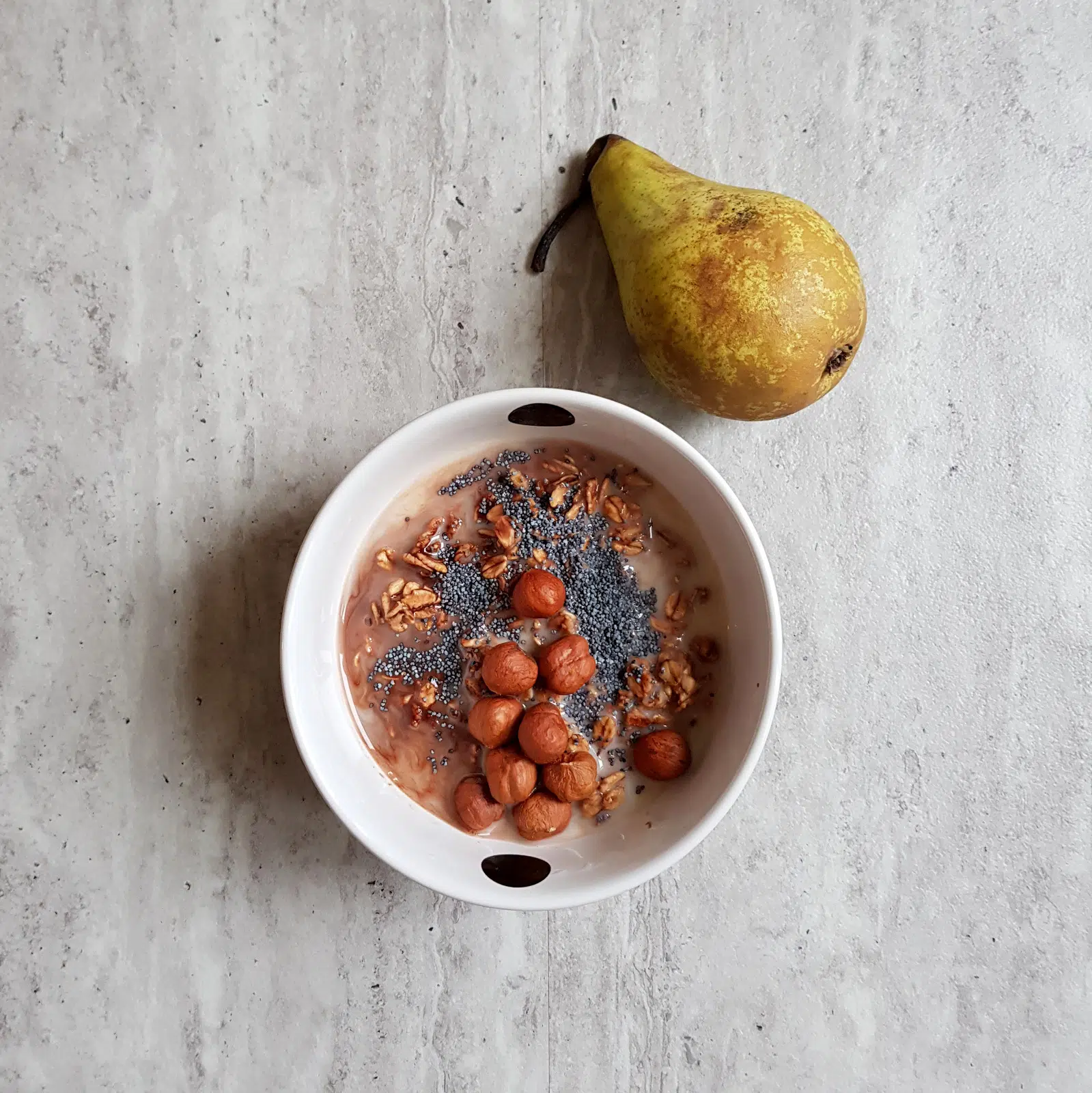 Rano, wychodząc do pracy, zalałam wodą wszystkie składniki. Po około 3,5 h drugie śniadanie miałam gotowe. Jeszcze tylko wkroiłam do niego gruszkę