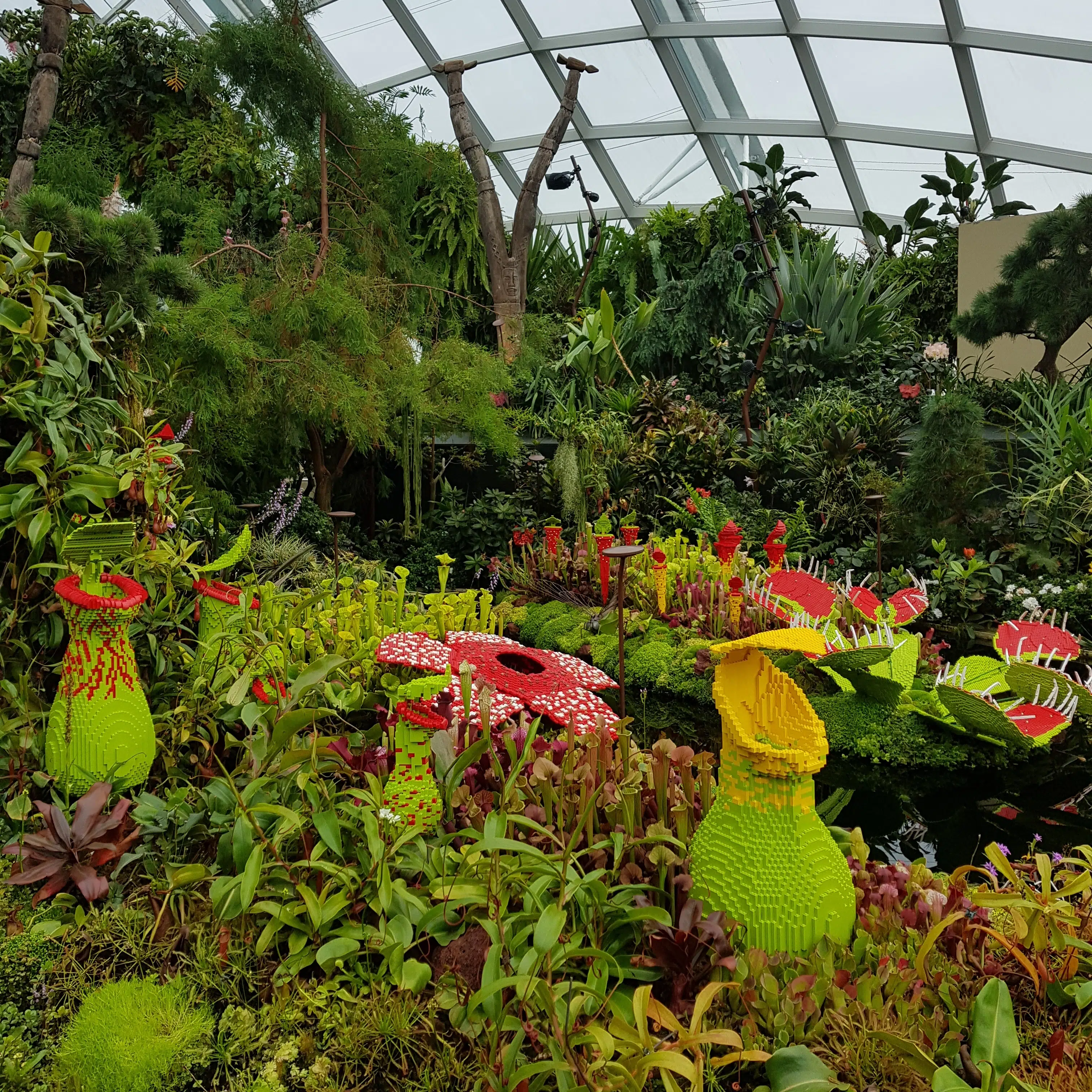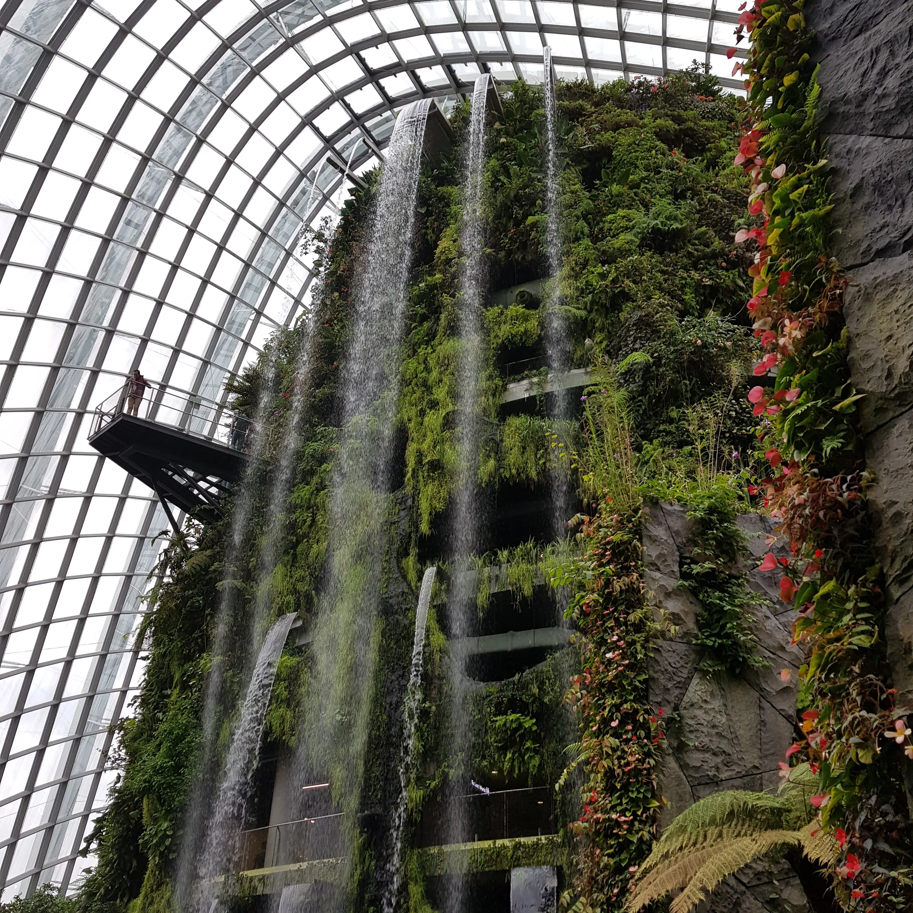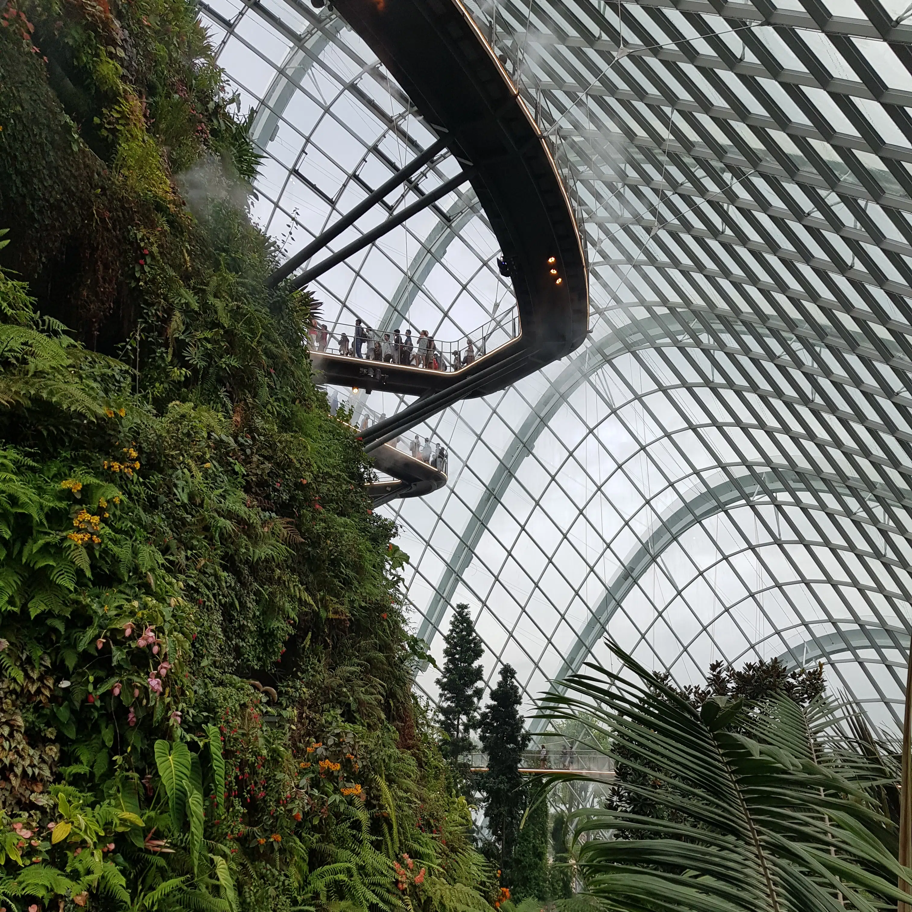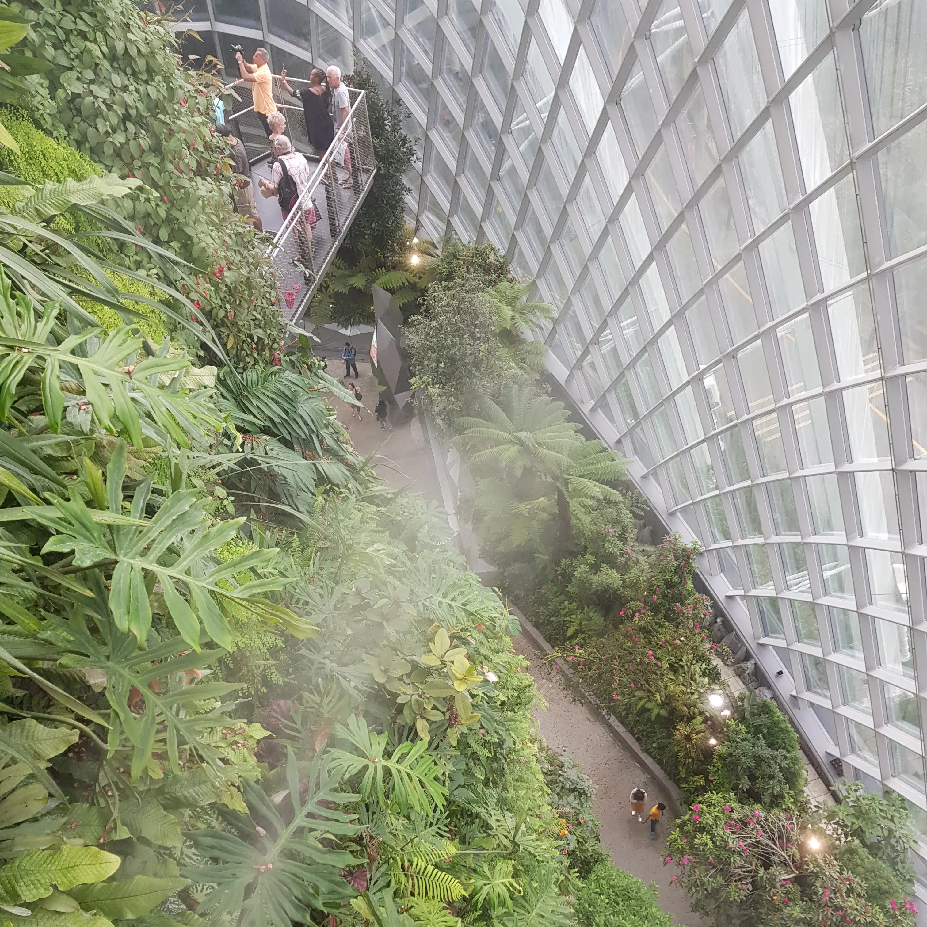 - Cloud Forest – kolejna kopuła, pod którą można podziwiać roślinność lasów tropikalnych i na własnej skórze oraz w płucach poczuć co oznacza tropikalna wilgotność powietrza. Zresztą na zewnątrz kopuły czuć to każdego dnia – Singapur niedaleko ma do równika