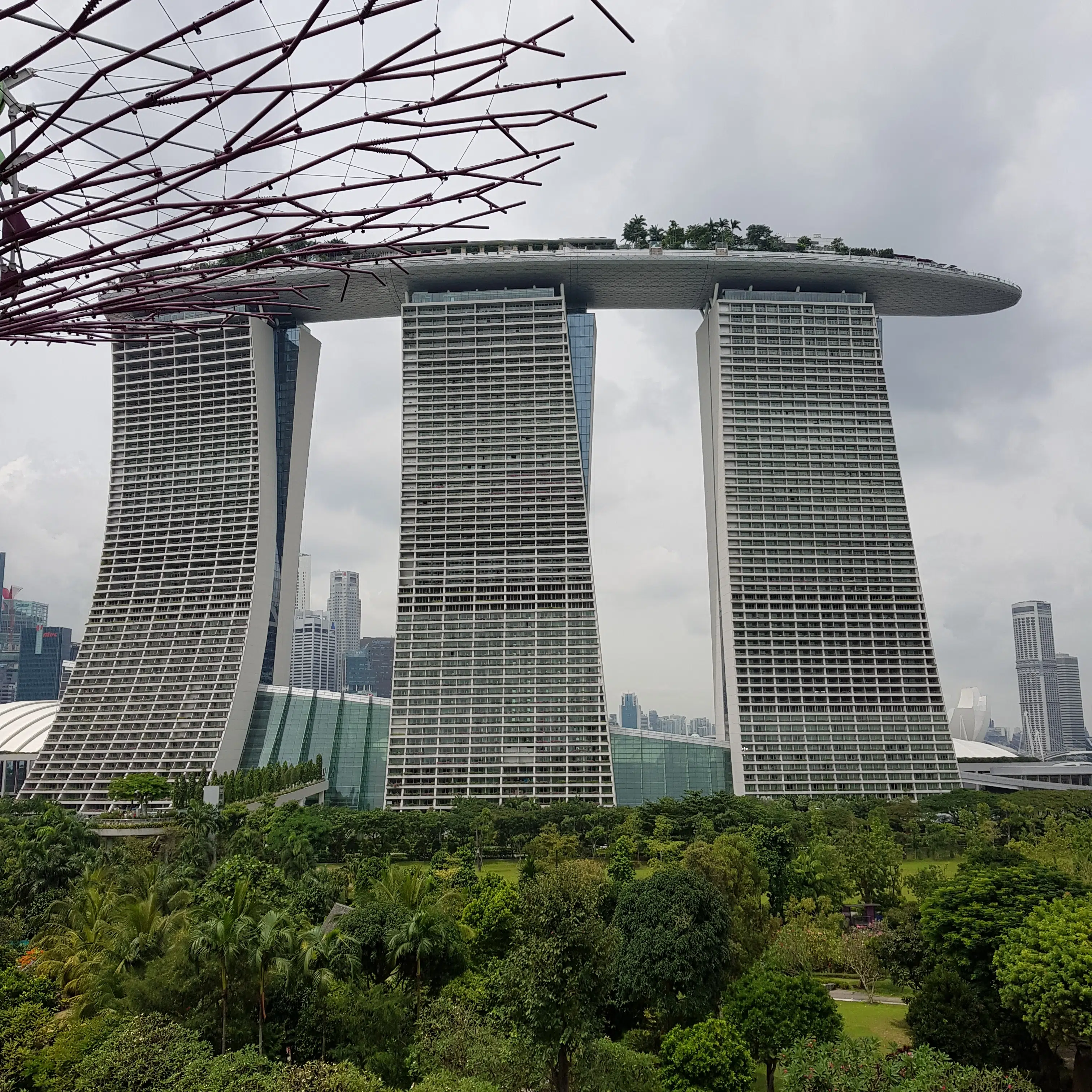 Widok z ogrodów na Marina Bay Sands – i znowu będzie lało.