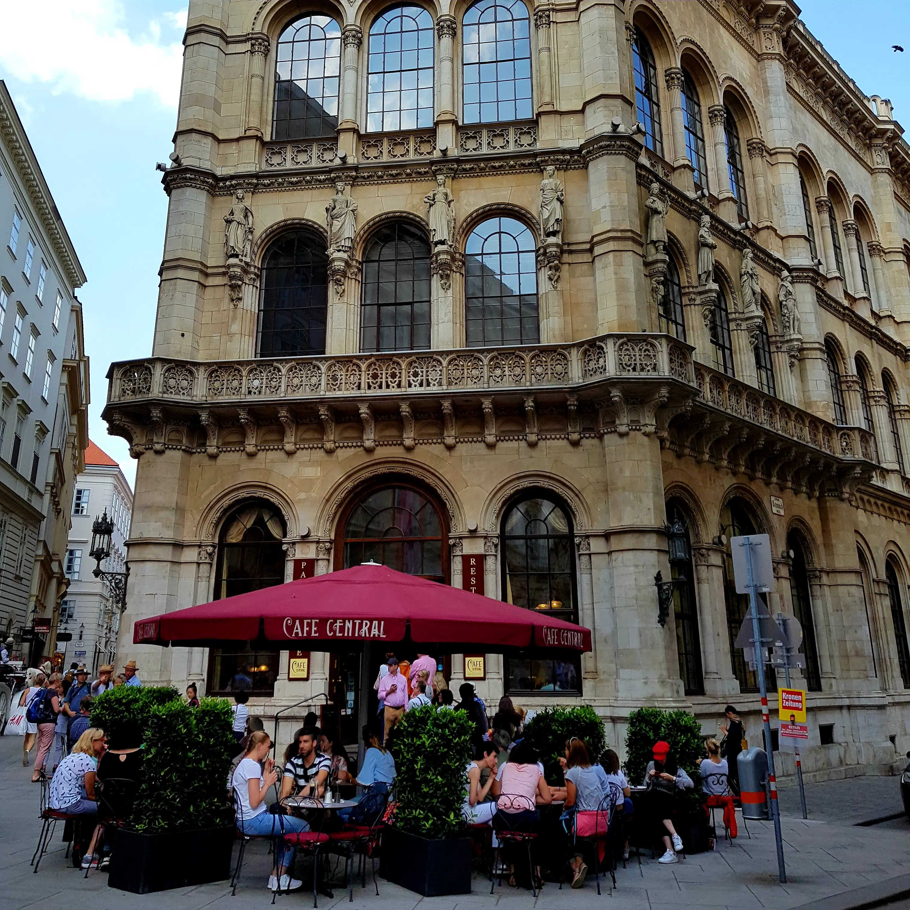 Jedna z najstarszych i najbardziej monumentalnych kawiarni w Wiedniu. Do niej niestety nie udało mi się wejść bo za późno się wybrałam na struclę, z której słynie. Przed wejściem stała kolejka a ja przed kolejkami uciekam. Cóż – może Tobie się uda zjeść słynne ciastko jabłkowe w Cafe Central. Ja zostawiłam sobie tą przyjemność na kolejną wizytę w Wiedniu.