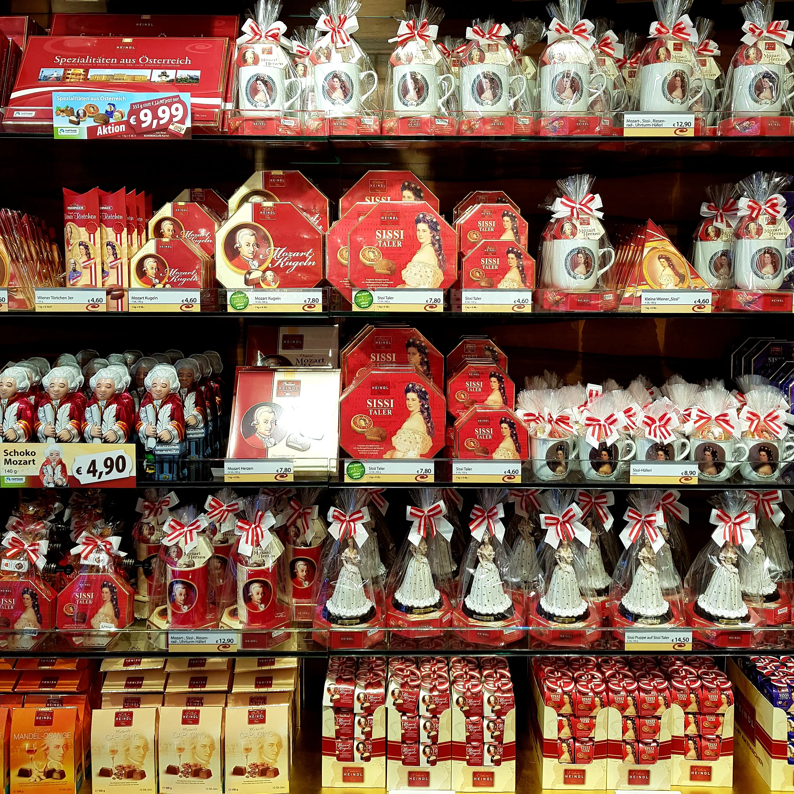Poza kawiarniami w Wiedniu, na każdym kroku, będzie Cię kusiła sklepowa wystawa ze słynnymi pralinami Mozart i Sisi. Nie opieraj się im – spróbuj. Tylko kup mniejsze opakowanie.