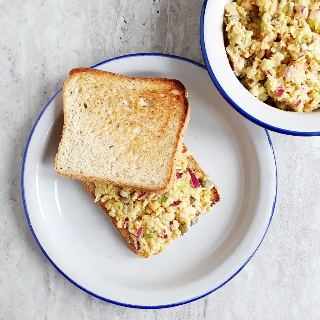 Ta sałatka z ciecierzycy a’la tuńczyk to doskonały dodatek do innych dań a także smaczna pasta do kanapek. Nie pomijajcie w niej żadnego ze składników – tu każdy ma znaczenie i wpływa na finalny smak sałatki.