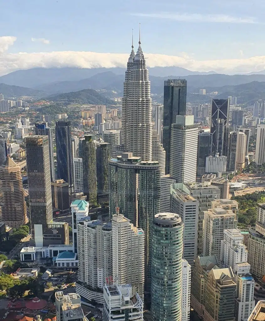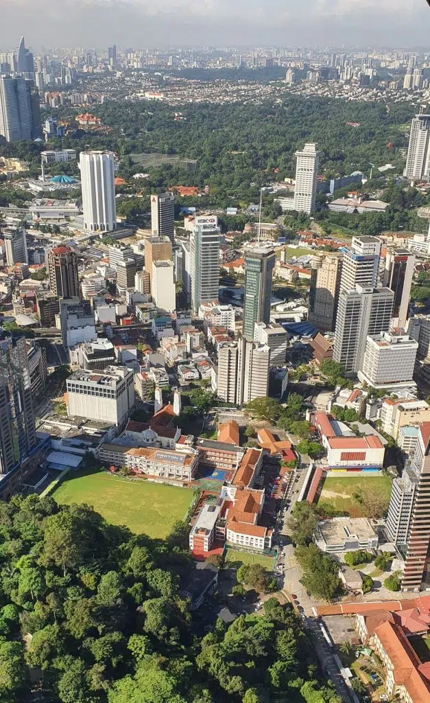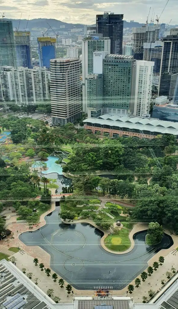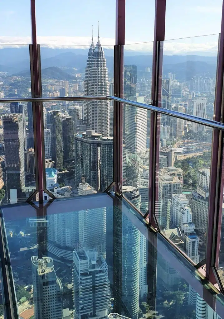 Z Menara Kuala Lumpur rozciąga się cudowny widok na miasto w tym na Petronas Twin Towers. Warto pokonać swój strach i wejść na punkt widokowy z przezroczystą podłogą. Nie warto kupować robionych tam zdjęć (ja zapłaciłam 175,00 MYR za kilka fotek, które nie były lepsze od tych zrobionych moim telefonem).