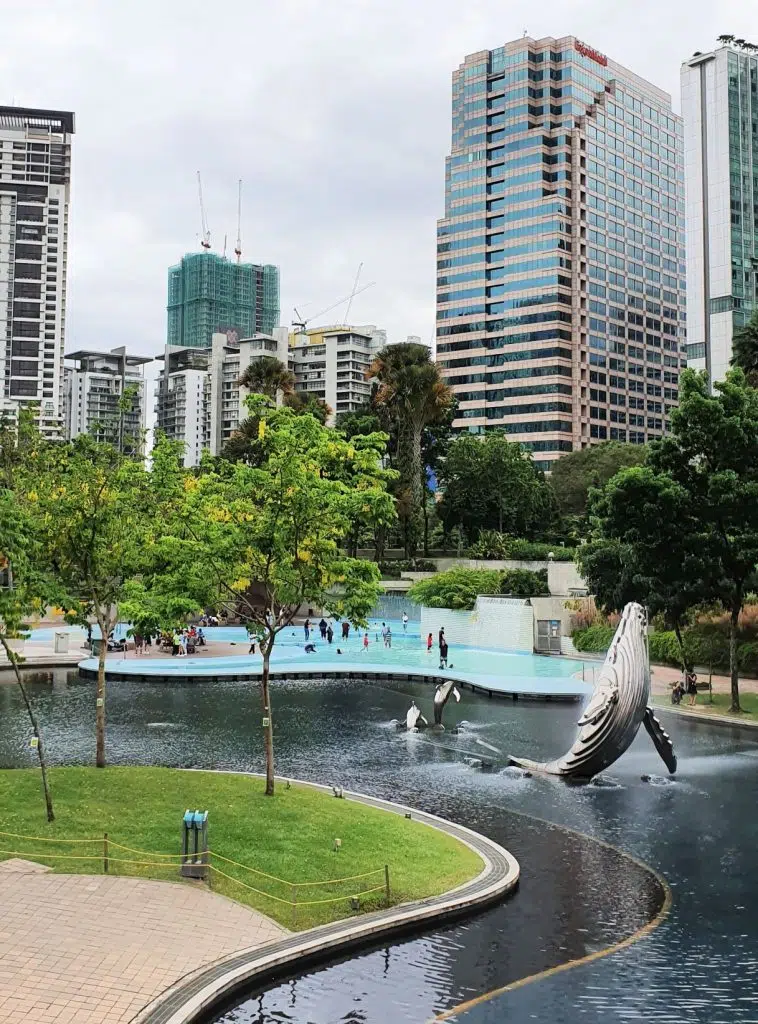 Po drugiej stronie Petronas Twin Towers znajduje się KLCC Park z fontannami, zielenią, ścieżkami do biegania.