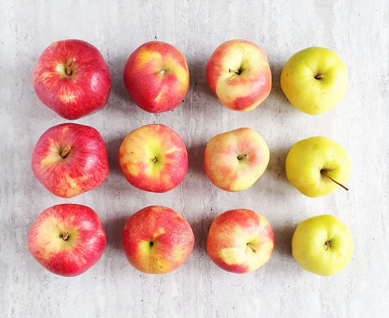 - Około 10-12 polskich jabłek – ilość zależy od wielkości. Tutaj sprawdzi się każda odmiana jabłek – twardych, słodkich, chrupiących a także tych miękkich i kwaśnych. Ja wykorzystałam odmiany Red Delicious, Golden Delicious, Red Jonaprice.