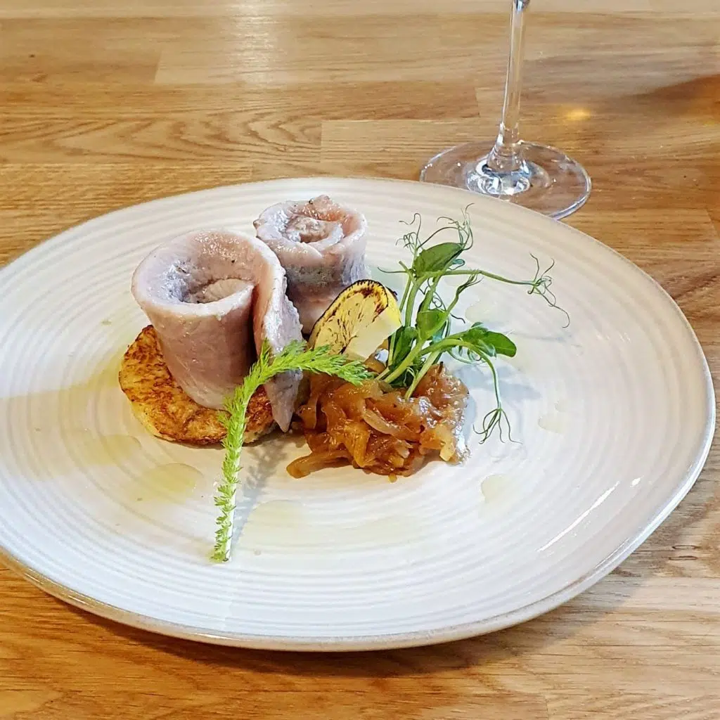 Oferta niemieckich win jest tutaj zacna i godna polecenia. A ostatnio do wina jadłam świetnego gołąbka wypełnionego kaszą gryczaną podanego z chrupiącymi warzywami oraz holenderskie matiasy z plackiem ziemniaczanym.