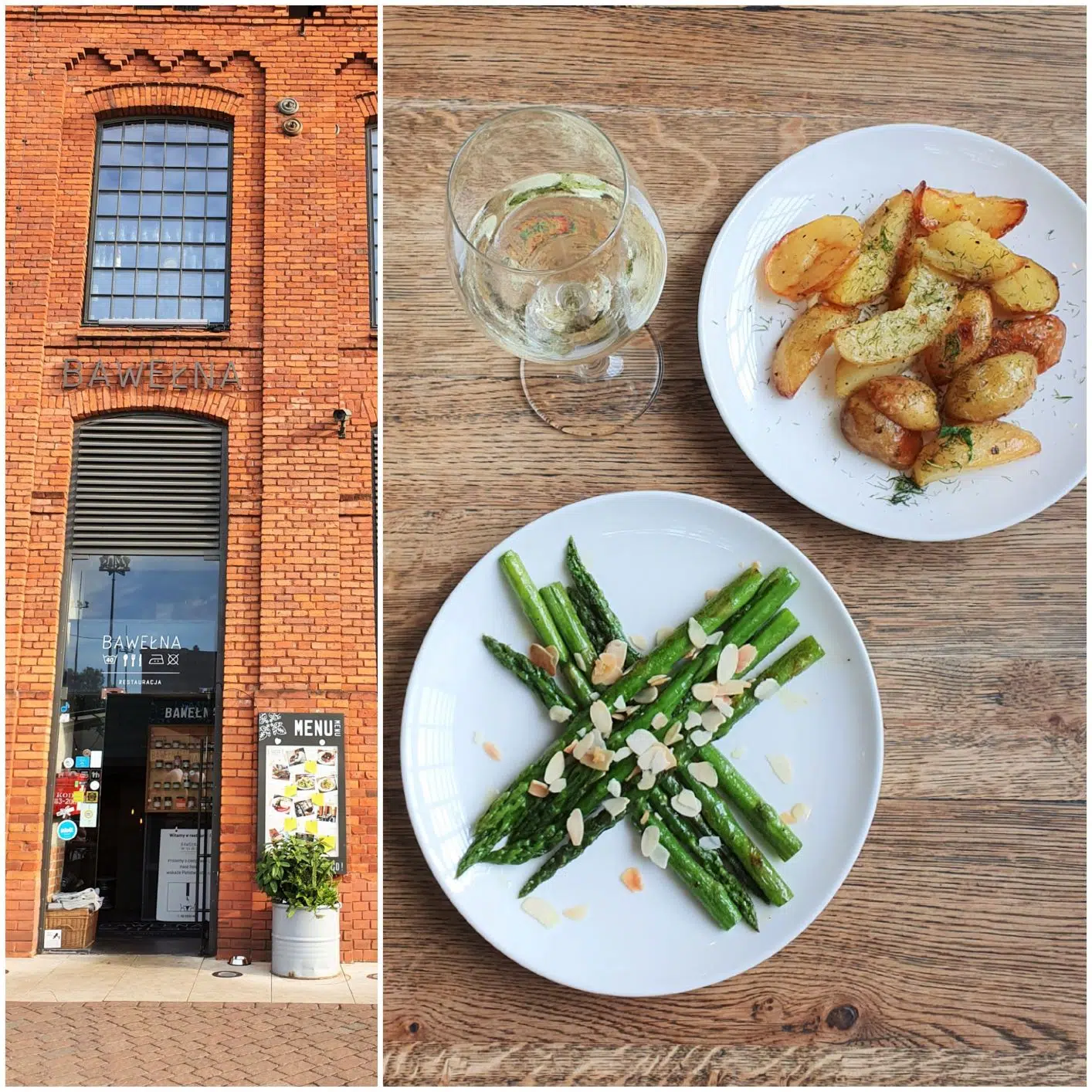 Karta dań w Bawełnie jest rozbudowana i widać w niej inspiracje kuchnią włoską. Zamówicie tu pizze, sałaty, zupy, różne pasty i desery. Ja nie byłam bardzo głodna. Skusiłam się jedynie na młode ziemniaki (11,00 zł) i szparagi (16,00 zł), żeby najeść się nimi na zapas. Kieliszek Sauvignon Blanc pasował do nich idealnie. Kolejnym razem przyjdę do Bawełny na zupę rybną, która kiedyś bardzo mi tutaj smakował.